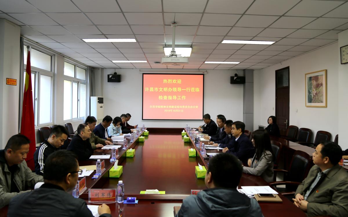 10月31日上午,以许昌市委宣传部正处级调研员贾巍强为组长的河南省省级文明校园考察组一行8人来到我校,对我校的精神文明工作进行考察。我校在第四会议室举行了专题汇报会。党委副书记孙海出席会议,相关单位负责同志参加了汇报会。会议由党委宣传部长、学校文明办主任冯晓民主持。