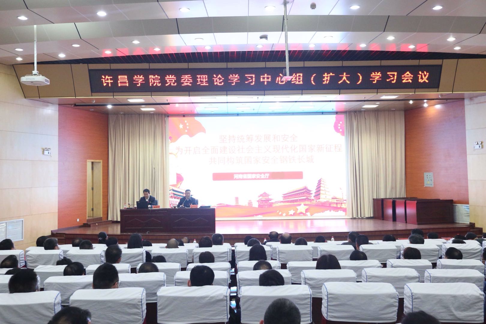 4月22日下午,我校党委理论学习中心组(扩大)学习会议在图书馆学术报告厅举行。河南省国家安全厅相关专家应邀作专题学习辅导报告,校党委副书记孙海主持会议。全体在校校级领导干部,党委理论学习中心组成员,校属各单位中层正职,各基层党委副书记,各单位安全管理人、安全员、党政办公室等相关部门科级干部,各二级学院团委负责人、全体专兼职辅导员等200余人参加学习。