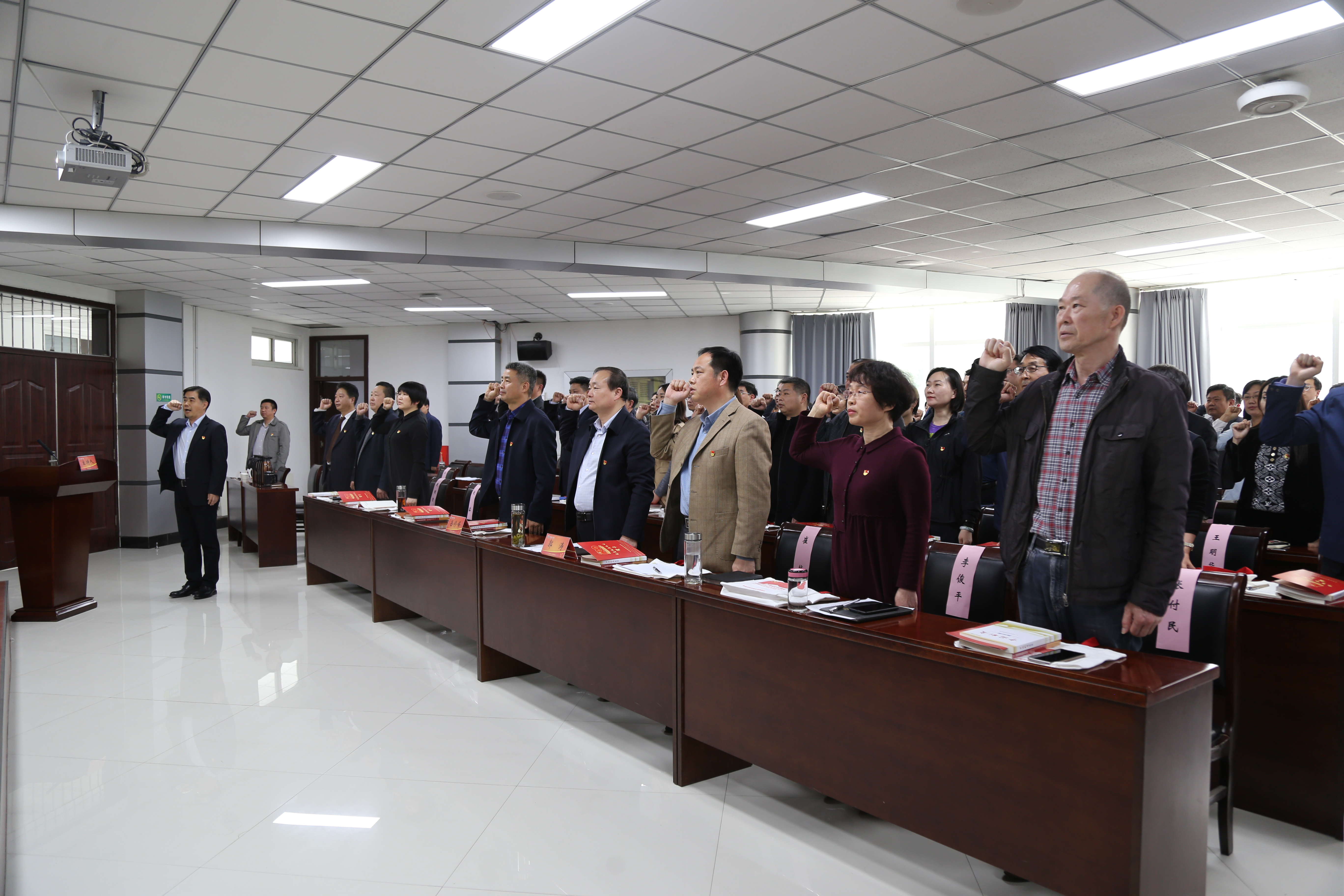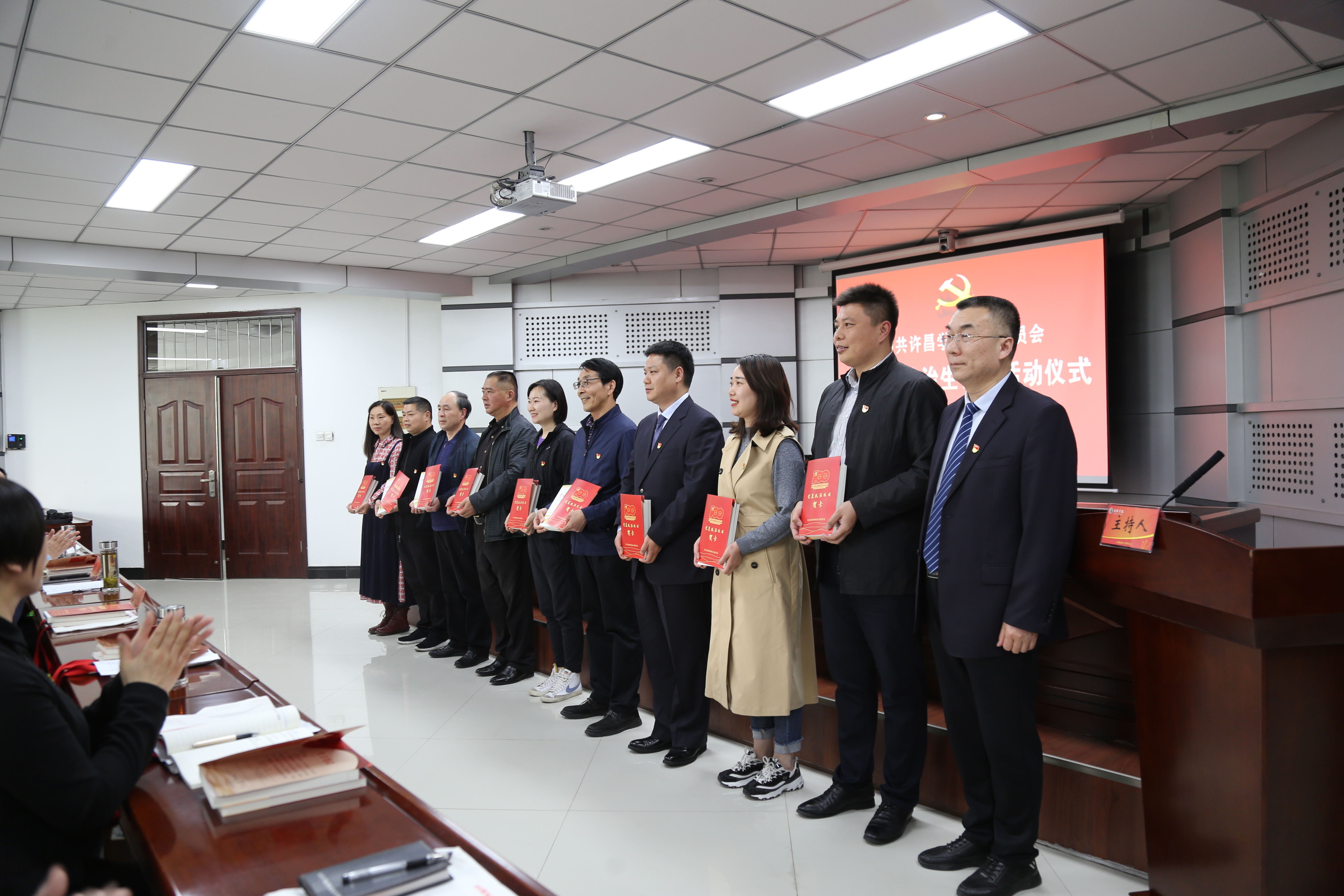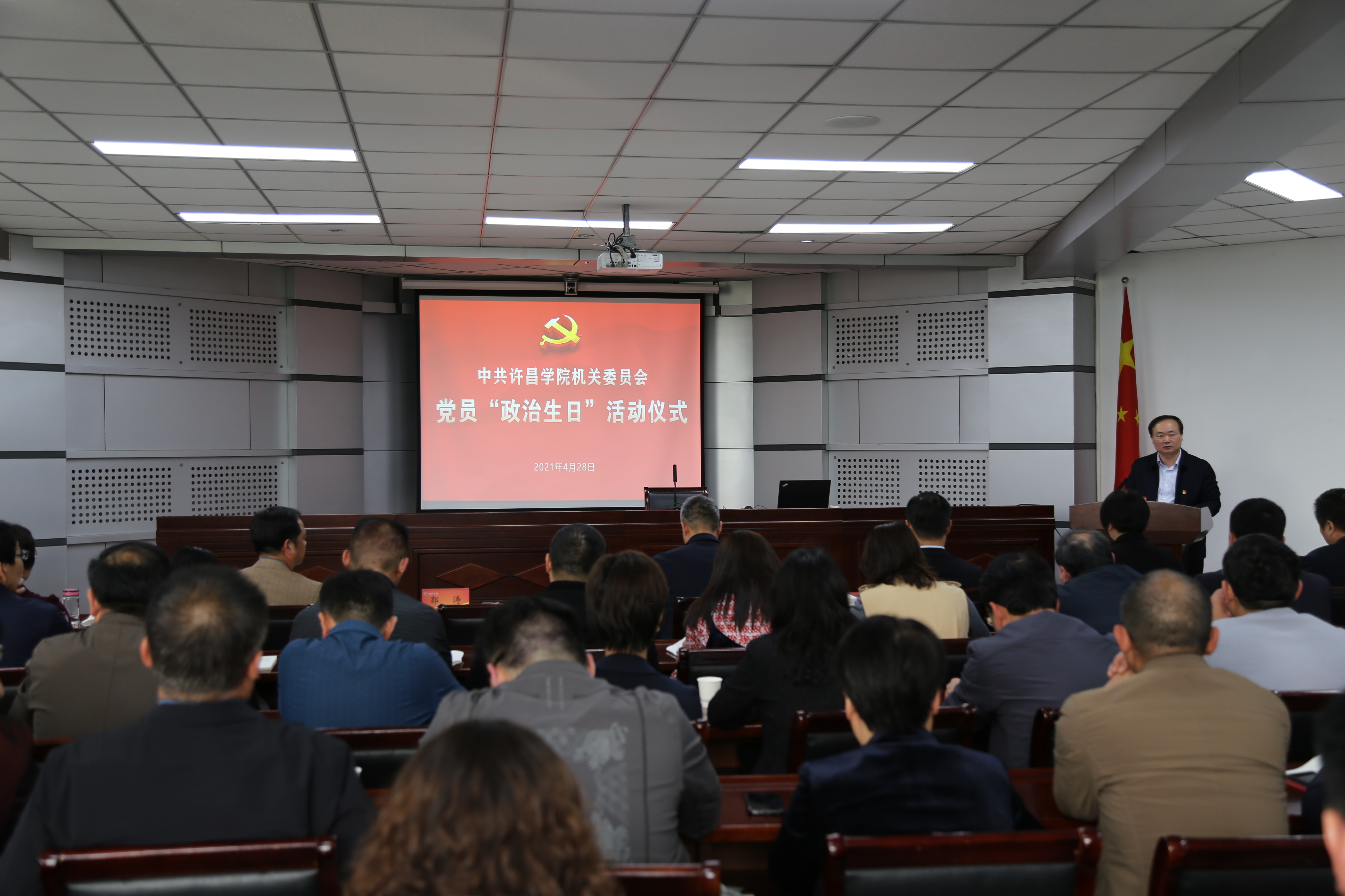 4月28日下午,机关党委在办公楼第三会议室举行党员“政治生日”活动仪式,为4月份入党的24名党员过集体“政治生日”。校党委副书记、院长岳修峰,校党委副书记、工会主席郭涛出席活动。活动由机关党委委员、教务处处长高远浩主持。