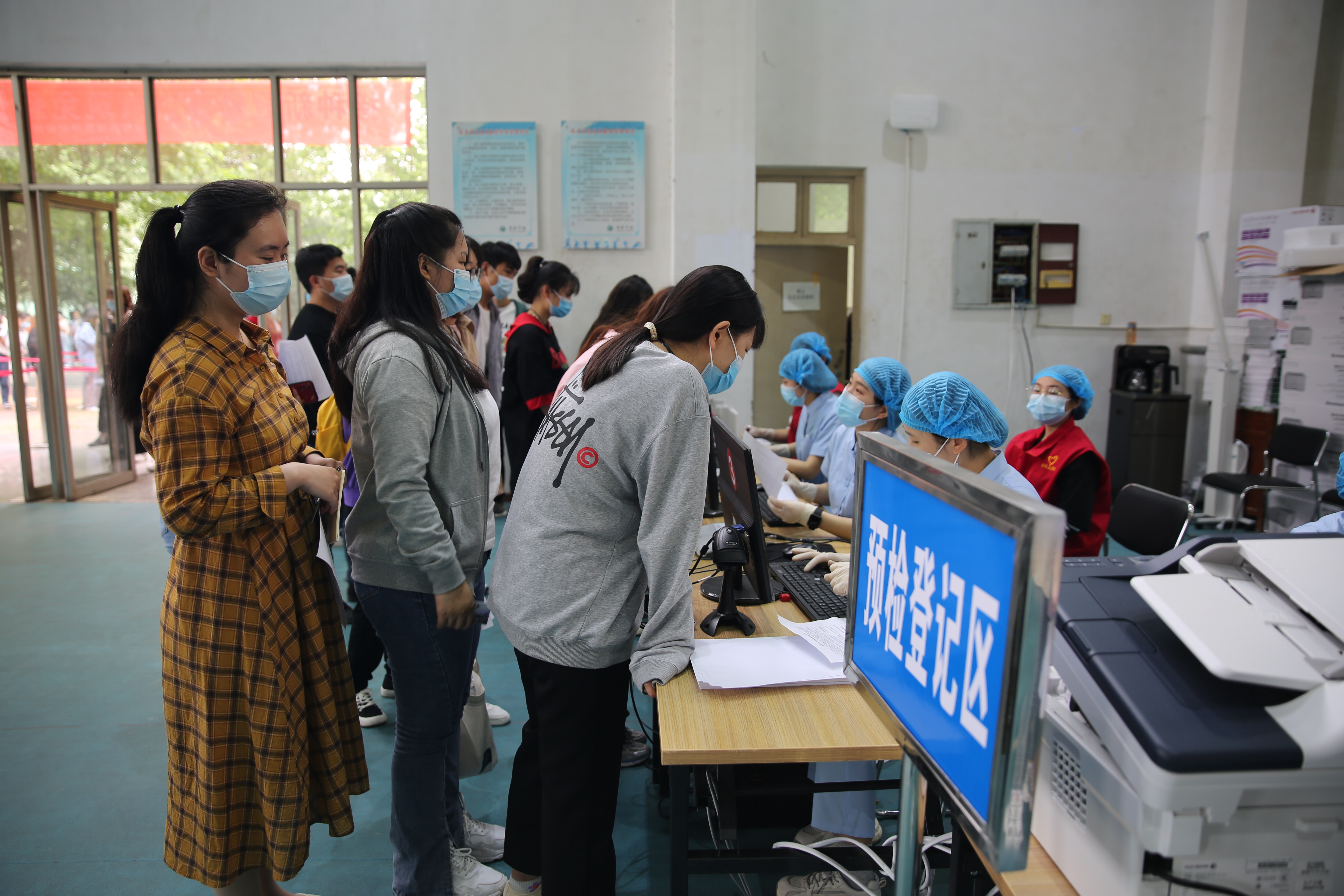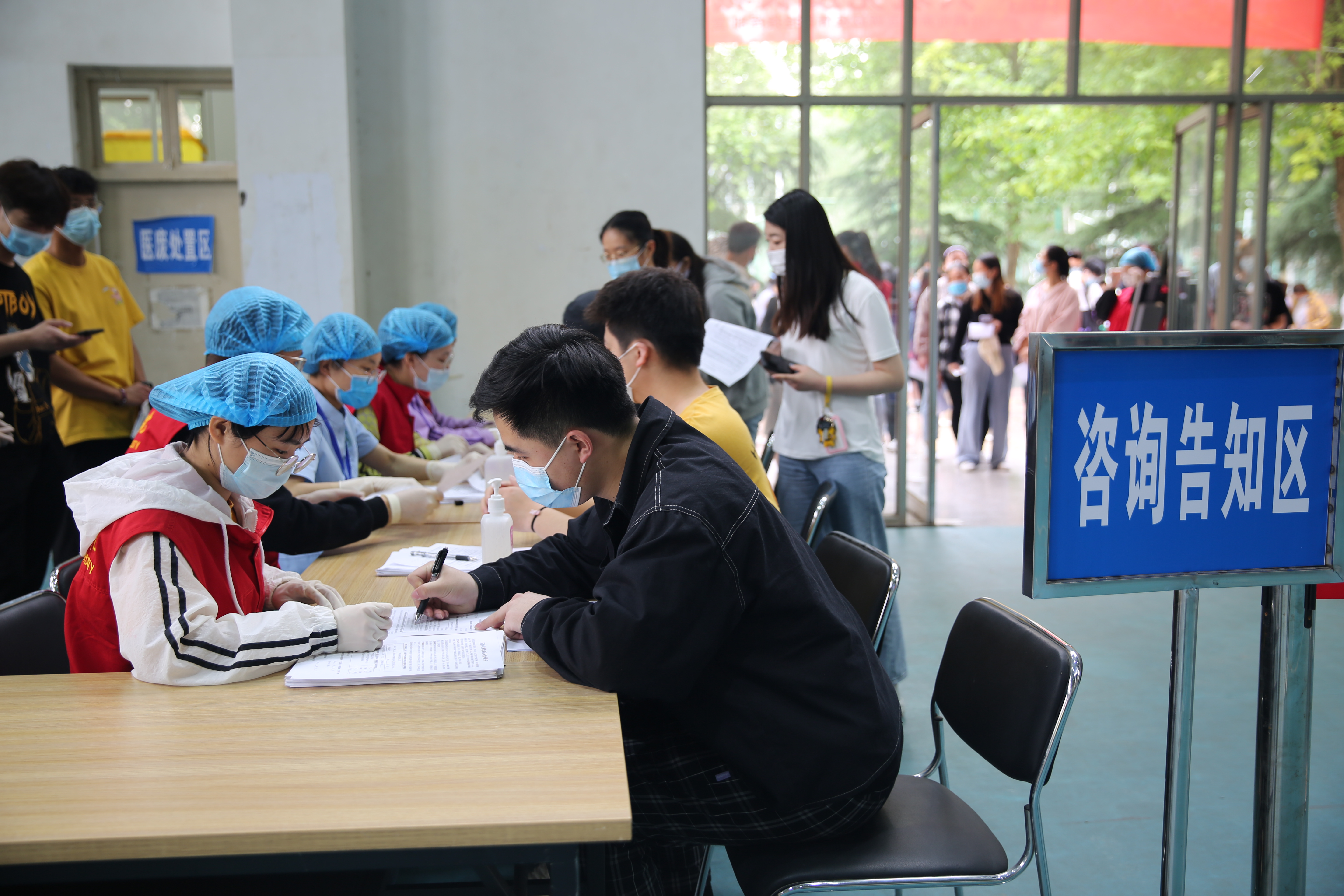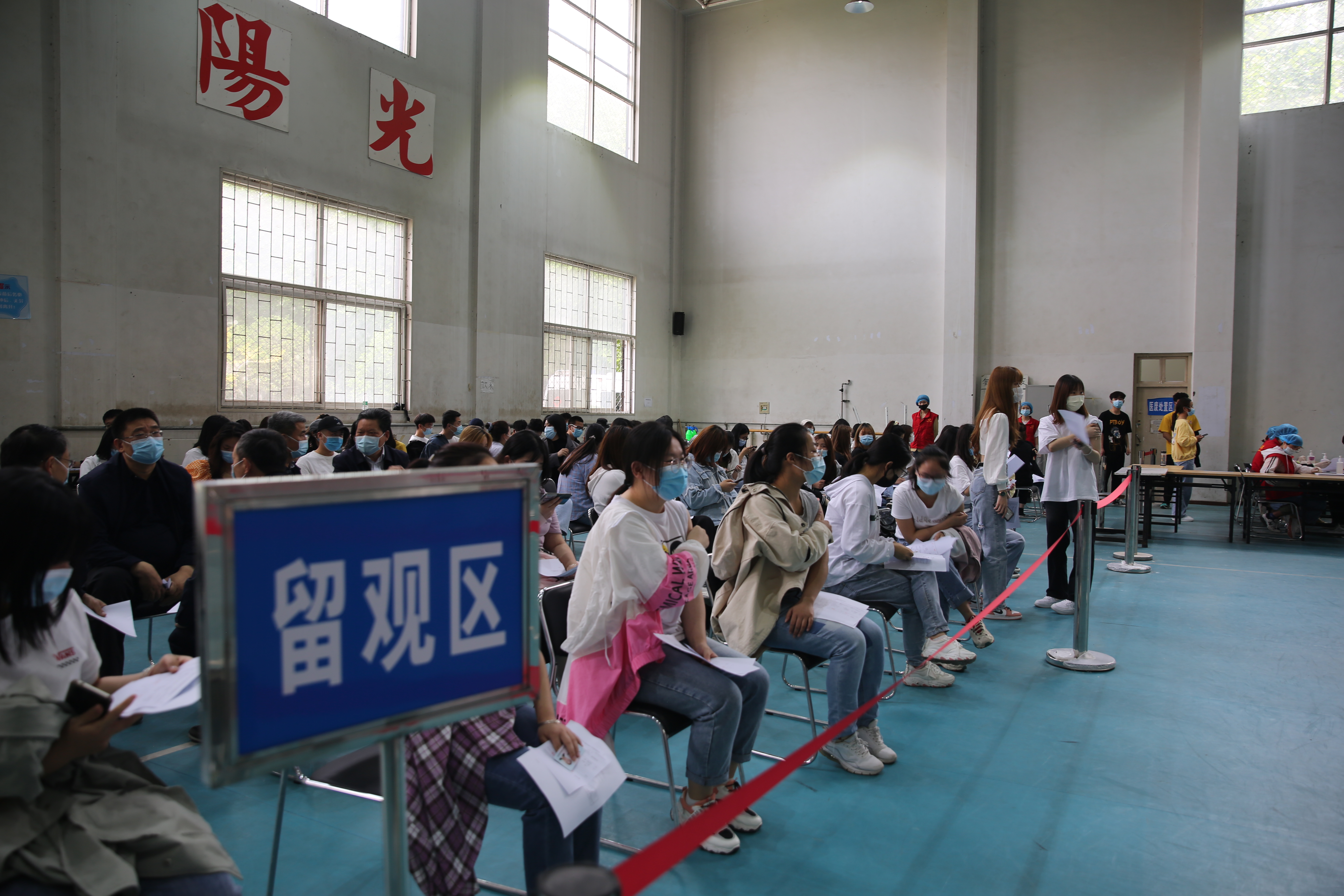 5月7日上午,全体在校校领导一同来到接种现场接种疫苗。前来接种的学生在志愿者引导下有序排队,经体温测量、健康咨询、知情同意书填写、信息录入、疫苗接种、留观半小时等流程依次完成接种。按照接种要求,现场设置有咨询告知区、预检登记区、接种区和留观区等区域,各个环节指示清晰明确,保证接种全过程单向流动。现场各部门人员协同配合,整个接种程序严谨,操作规范,秩序井然。