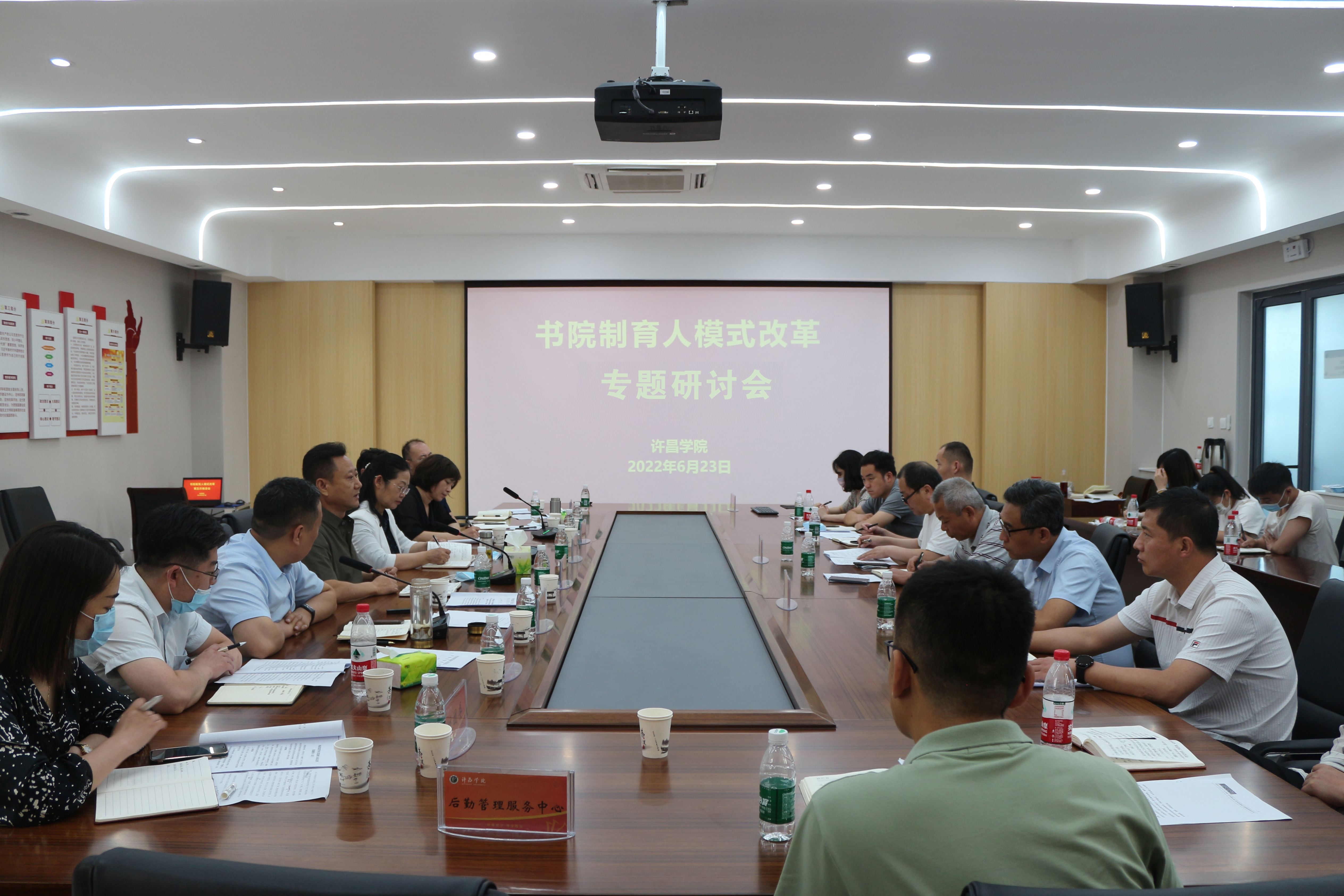 为深入贯彻落实《河南省高等学校探索书院制育人模式改革的指导意见(试行)》精神,6月23日上午,我校在保卫处二楼会议室组织召开书院制育人模式改革专题研讨会。会议对书院制育人模式改革启动一年来的工作进展情况进行了全面总结,安排部署下一阶段重点工作。校党委副书记孙海、副院长潘春彩出席会议,各相关职能部门、弘毅书院、博雅书院领导班子成员及各科室负责人参加会议,会议由书院总院院长周银超主持。