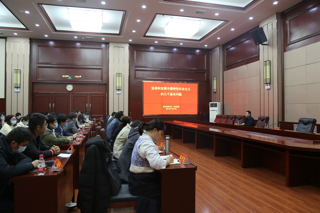 报告会上,孙海副书记从“为什么坚持党的全面领导”“为什么坚持社会主义道路”“为什么要以人民为中心”“为什么发展是第一要务”“为什么要达到共同富裕”等五个基本原则方面,深刻剖析了什么是中国特色社会主义。他以践行与发展中国特色社会主义的风雨历程为讲述视角,引用大量生动详实的国内国际实例,对中国特色社会主义的“接力”探索过程进行回顾,让在场的青年教师深刻体会到以人民为中心、为人民服务的中国特色社会主义制度的核心,认识到中国特色社会主义制度最大的优势、最大特色是中国共产党的领导,坚持党的全面领导是党和国家的根本所在、命脉所在,是中国人民和中华民族的利益所系、命运所系。他强调,我国正面临百年未有之大变局,广大青年教师要深刻领悟中国共产党领导和中国特色社会主义制度的显著优势,继续全面深入学习习近平新时代中国特色社会主义思想,不断求真务实、砥砺奋进、增强历史使命感和责任感,潜心教书育人,为推动学校高质量发展贡献青春智慧和力量。
