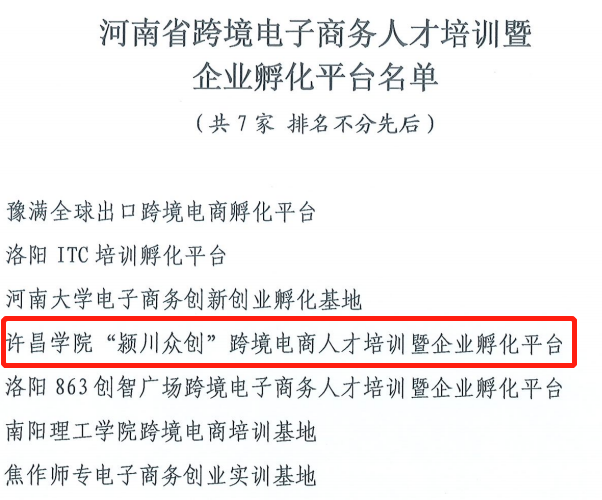 近日,河南省商务厅公布了河南省跨境电子商务人才培训暨企业孵化平台名单,我校商学院、创新创业学院联合申报的许昌学院“颍川众创”跨境电商人才培养暨企业孵化平台成功入选。