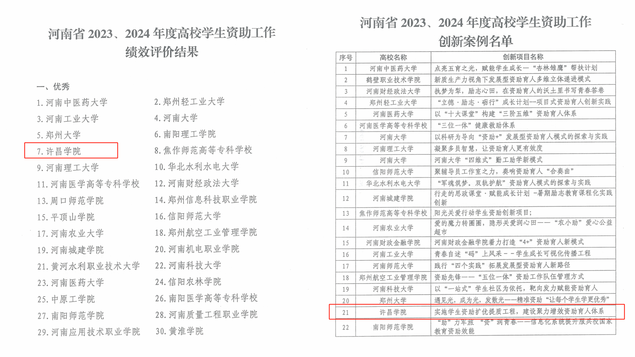 近日,河南省教育厅、国家开发银行河南省分行联合下发《关于公布全省学生资助工作绩效评价结果的通知》(教资助〔2025〕158号),我校再次荣获全省高校学生资助工作绩效评价“优秀”等次,《实施学生资助扩优提质工程,建设聚力增效资助育人体系》项目获评高校学生资助工作创新案例。这也是我校自2017、2018年度以来连续8年获评全省高校学生资助工作绩效评价“优秀”等次,绩效评价排名逐年提升。