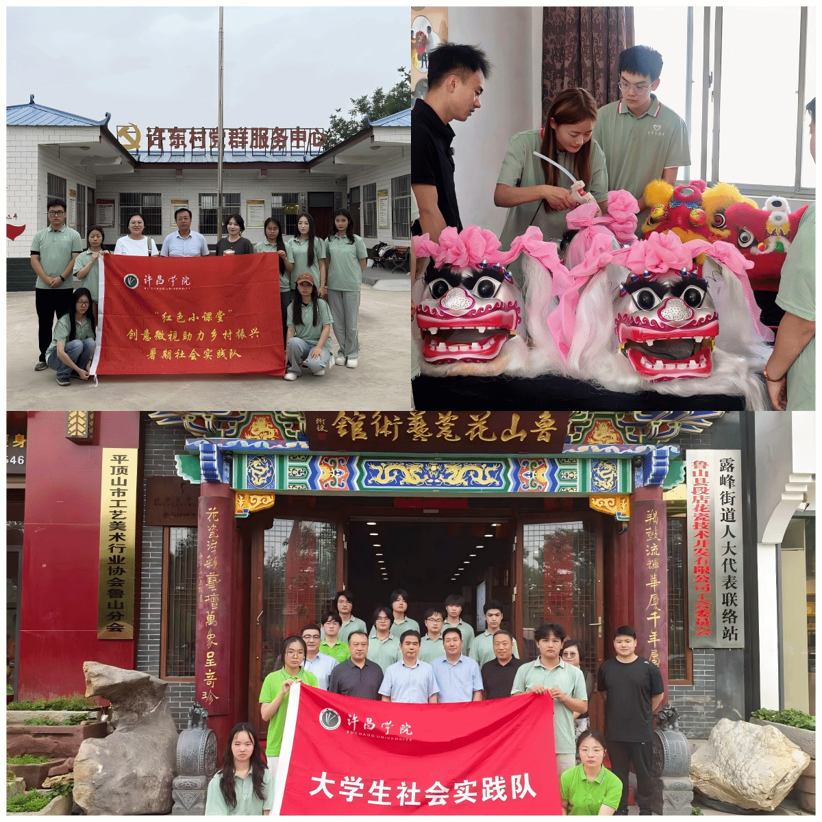 商学院“燃乡魂”实践队连续三年扎根许昌霍庄村,针对社火非遗人才断层等问题,队员学习舞狮头扎制等核心技艺,通过电商赋能推动产品“触网”,以文旅融合、文创开发等多元方式为社火注入新活力。文史与传媒学院“红色小课堂”实践队走进周边多个村庄,发挥传媒优势,拍摄创意短视频记录乡村风貌与青年实践身影,用新媒体传播助力乡村发展。弘毅书院“探索鲁山县非遗文化传承纪实”社会实践团队积极响应“文化强国”战略,深入鲁山县花瓷生产企业,以“史料考证+技艺解构+跨界创想”模式,改良鲁山花瓷器型、开发文创并数字化展示工艺,构建“研究—创新—转化”链条,为非遗活态传承提供青春方案,多方协同推动乡村文化与经济共兴。