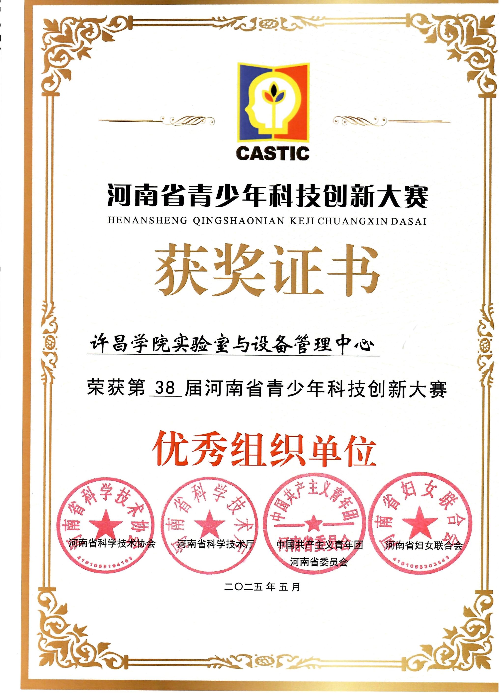 9月1日上午,2025年许昌市全国科普月主场活动在许昌市科技馆广场举行。仪式现场对在第38届河南省青少年科技创新大赛中表现突出的单位进行了表彰,其中,我校实验室与设备管理中心获优秀组织单位。
