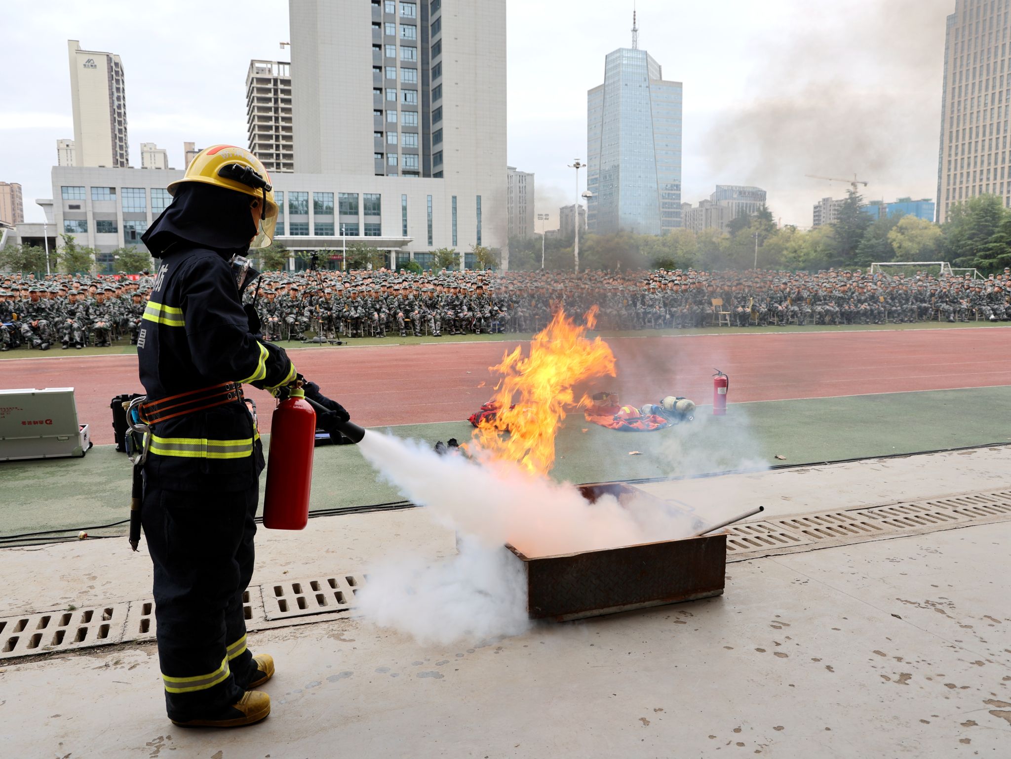 本次安全警示教育系列活动特邀许昌市反诈中心教导员押晓雷、许昌市消防救援支队工程师姚浩瀚、许昌市公安局东城分局天宝路派出所社区民警陈星谛等公安消防部门指战员,从国家安全、防盗、人身安全、消防安全、防范电信网络诈骗等方面向与会师生做了全方位的教育培训,并开展消防灭火实操及逃生演练。
