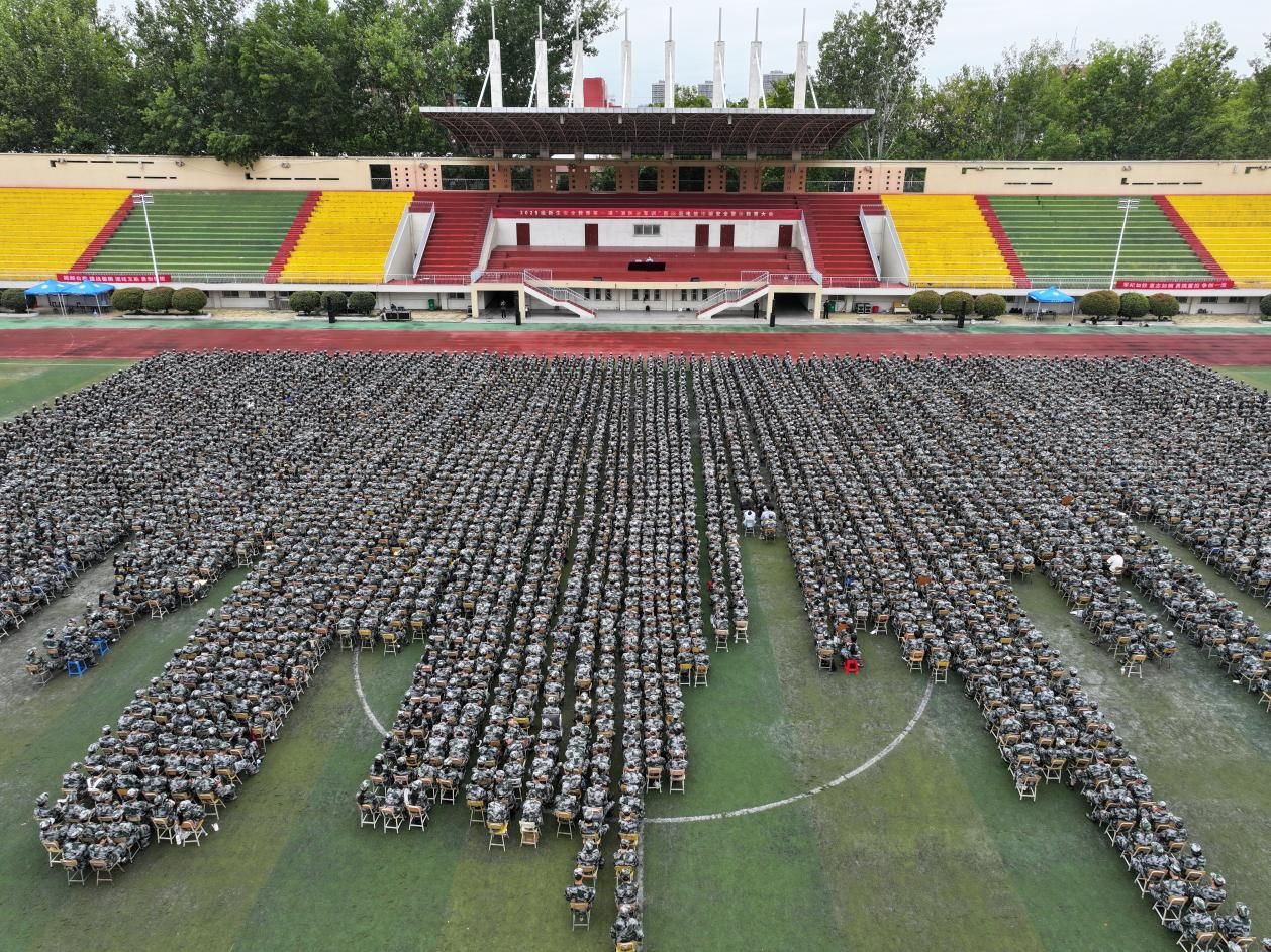 9月17日上午,我校在羽飞田径场举行2025级新生安全教育第一课——“消防进军训”暨防范电信诈骗安全警示教育大会。2025级5000余名新生及70余名军训教官参加活动。
