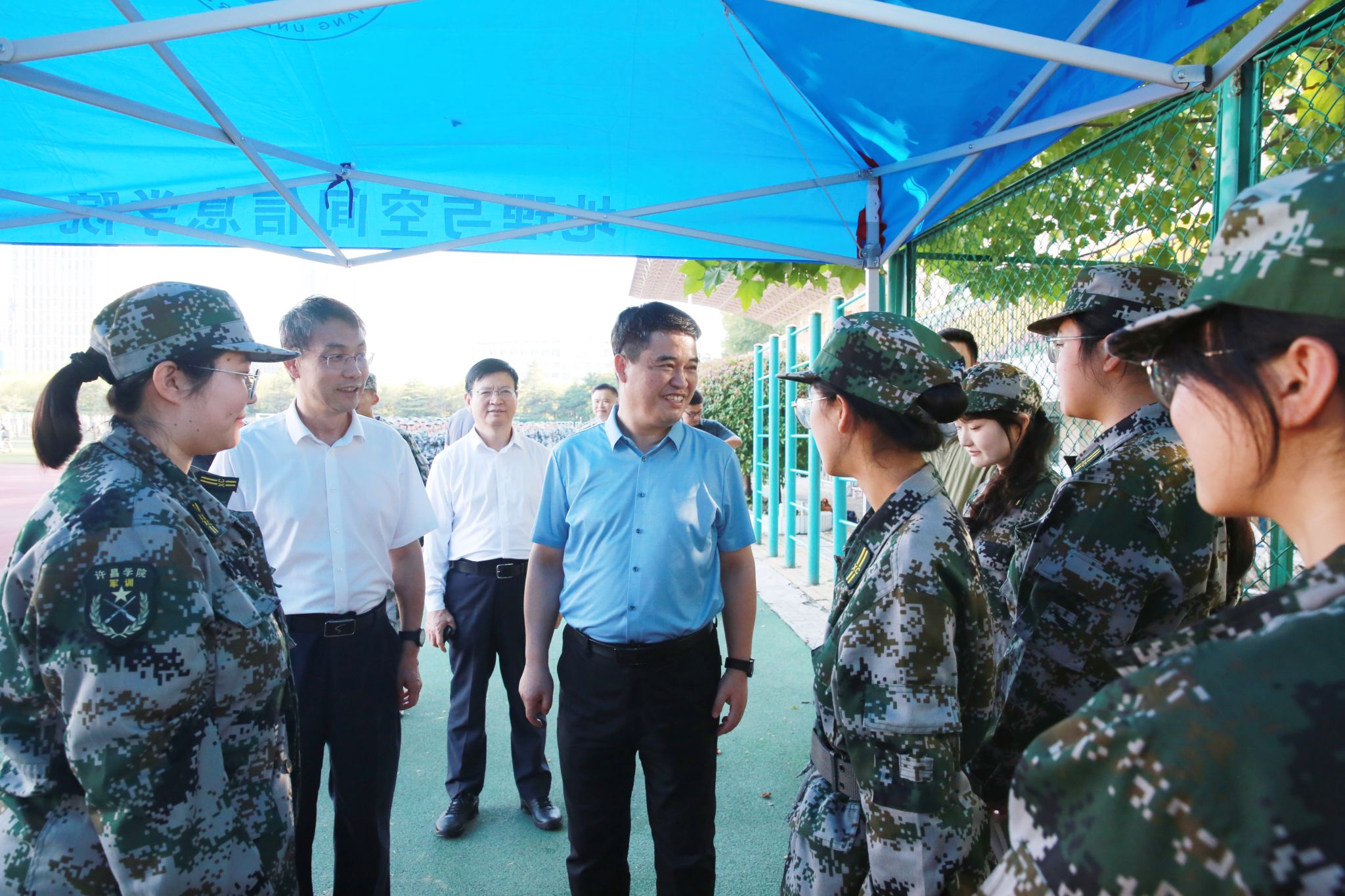 9月24日下午,校党委书记刘荣增,校长郑直,党委副书记、工会主席梁予昉一行深入八一路校区各训练场,对2025级新生军训工作进行全面检查和深入指导,并亲切慰问参训新生、军训教官和新生辅导员。