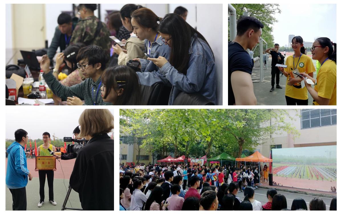 许昌学院官网、网络电视台、许昌学院报、校园广播、新媒体的近200名师生投入到运动会的宣传报道中,为广大师生呈现校运会全景互动报道。大学生通讯社、校报记者团奔波在赛场各个角落,用镜头和文字捕捉每一个有意义的瞬间,网络电视台出动8台摄像机全程取景编播,制作“精彩瞬间”“冠军榜”等多段视频全程直播和拍摄精彩赛事,官方微博“许昌学院运动会”话题的阅读量达到 36万,官方微信、QQ校园号推文阅读量累计4万余次,校园广播制作12档运动会专题节目,每天累计播出6个小时......一张张照片、一行行文字、一段段视频,记录和串连起运动会的精彩。