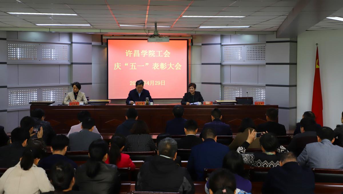 校工会主席高金星在大会上讲话,他首先代表校工会对获得表彰的先进集体、文明家庭和优秀个人表示祝贺,并通过大会向全校教职工致以节日的问候和祝福;高主席总结了我校工会2017年以来的主要成绩:两年来,校工会两次获得河南省教科文卫体工会“工作先进单位”,获得2018年“践行新思想·奋进新时代——助力脱贫攻坚教职工志愿服务先进单位”等荣誉,有两位同志分别获得“河南省先进工作者”“河南省五一劳动奖章”和“许昌市先进工作者”荣誉,我校还涌现出了一批先进集体、文明家庭和先进个人,劳动光荣、知识崇高、创新伟大日益成为全校教职工的共识。