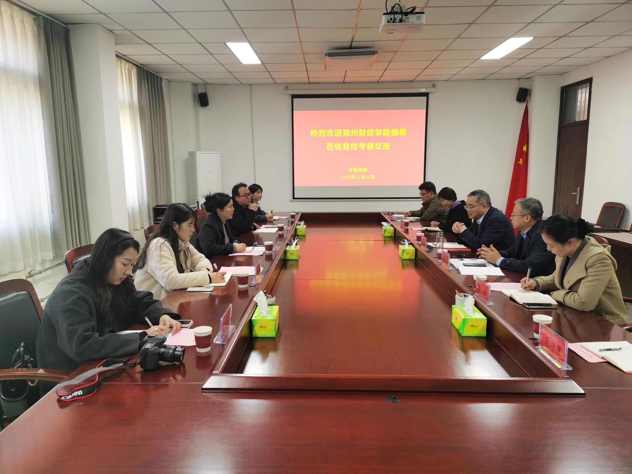 11月26日上午,郑州财经学院副校长王艳珍一行到我校考察交流。我校在办公楼第一会议室举行座谈会。副校长牛海鹏出席座谈会。会议由课程中心主任闫慧主持。