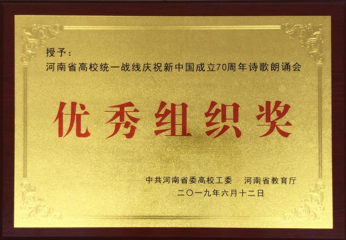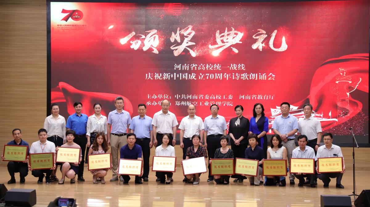 6月11日至12日,河南省高校统一战线庆祝新中国成立70周年诗歌朗诵会决赛在郑州航空工业管理学院举行。我校获三等奖和优秀组织奖。
