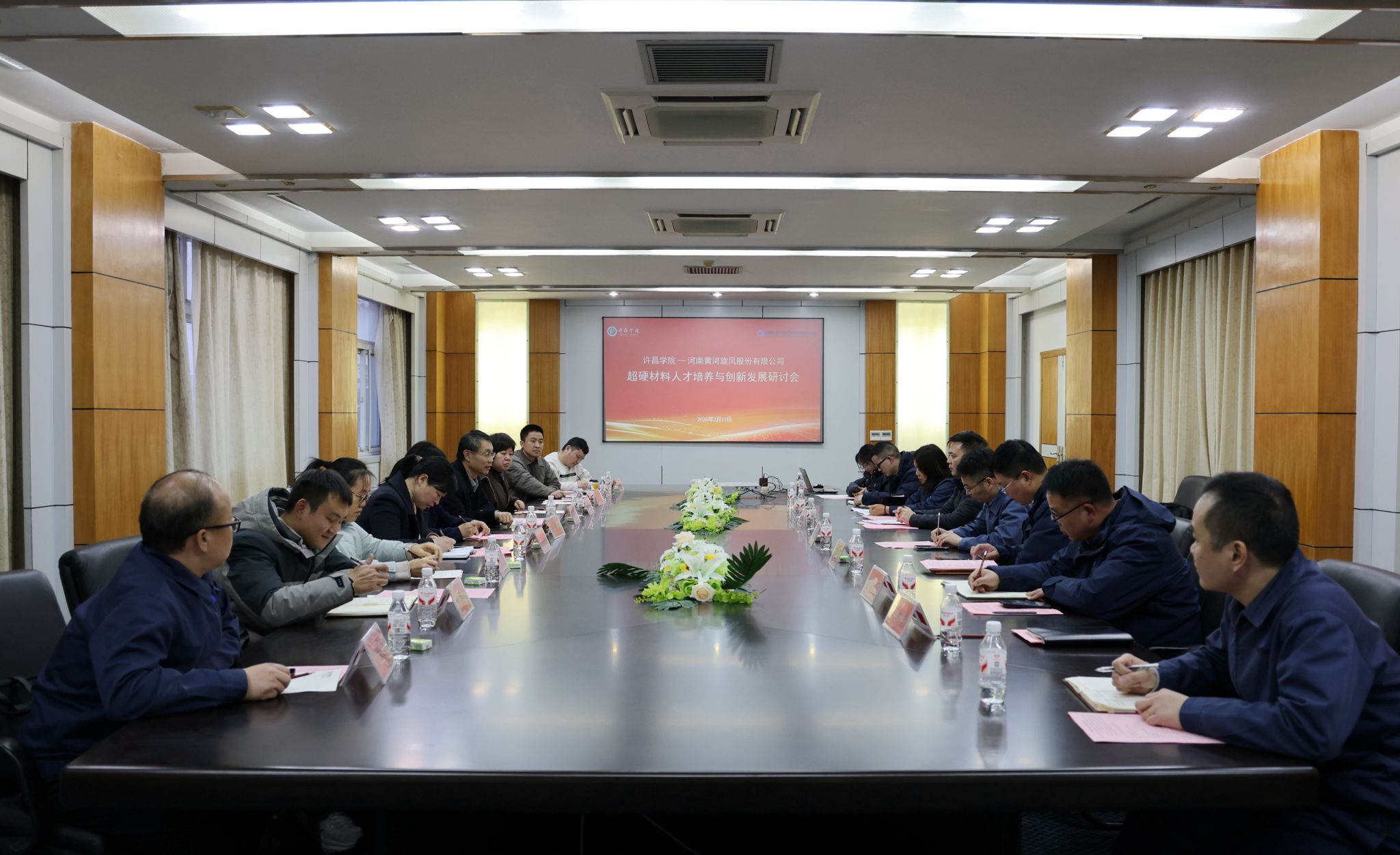 2月11日,由许昌学院和河南黄河旋风股份有限公司联合举办的超硬材料人才培养与创新发展研讨会在黄河旋风举行。我校校长、中原学者郑直教授,黄河旋风总经理庞文龙、副总经理兼研发中心主任武玺旺,我校新闻中心、教务处、化工与材料学院等单位相关负责人,超硬材料领域骨干教师,以及黄河旋风公司相关部门负责人等参加研讨会。