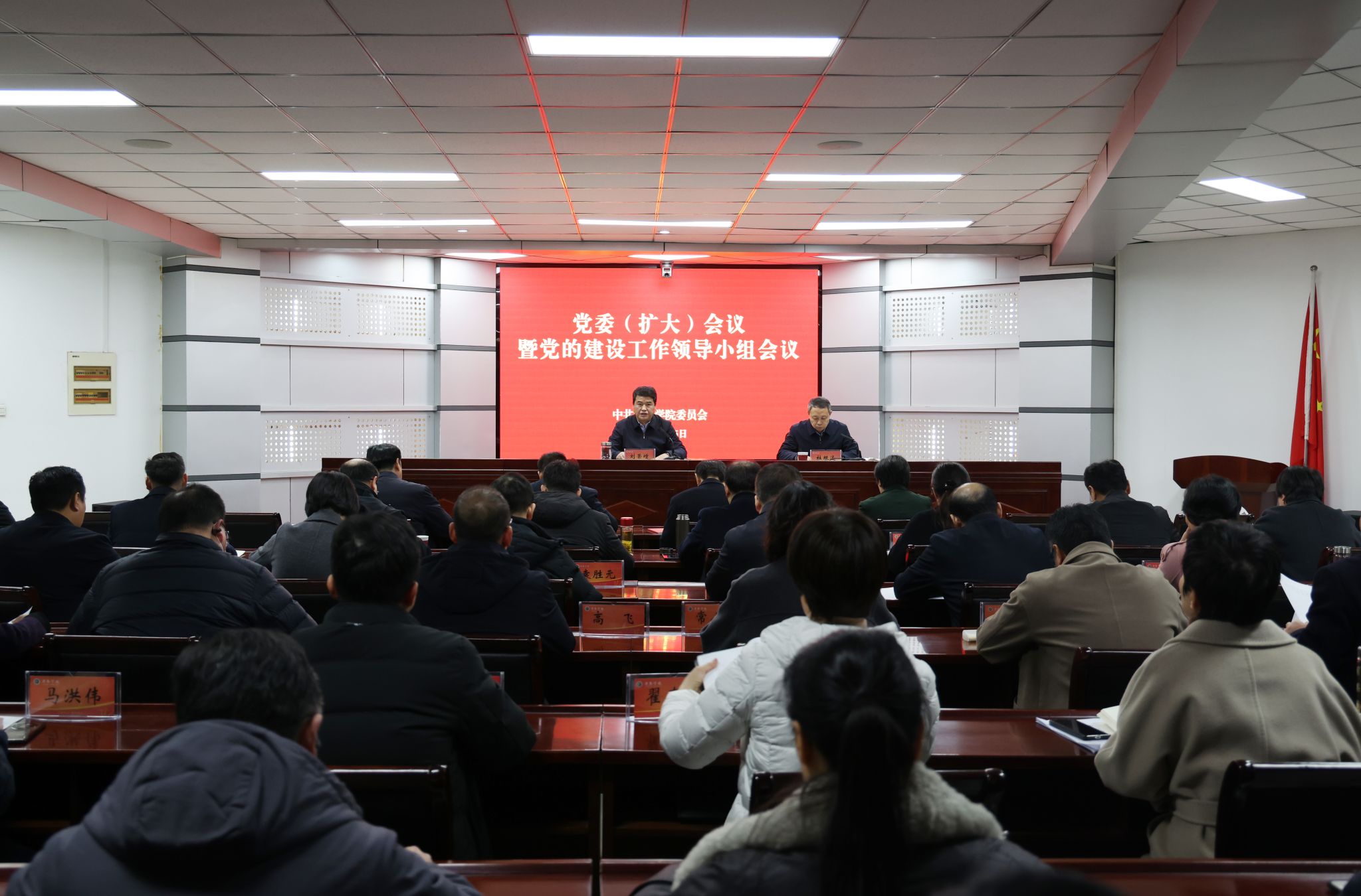 3月5日上午,我校在办公楼第三会议室召开党委(扩大)会议暨党的建设工作领导小组会议,专题部署学校开展树立和践行正确政绩观学习教育工作。校党委书记刘荣增主持会议并讲话。全体在校校领导、学校党的建设工作领导小组成员单位负责人及全体中层正职干部参加会议。