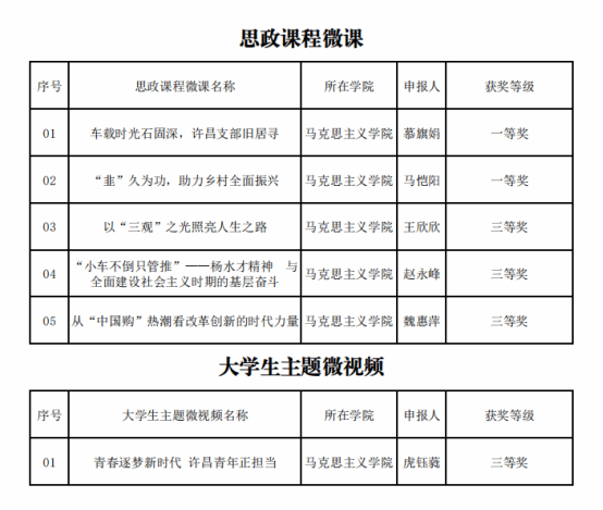 自此次活动启动以来,我校高度重视,教务处、课程中心、实验室与设备管理中心、马克思主义学院等单位通力合作,精心组织筹备、依据作品征集要求,引导师生深挖许昌本地红色资源,聚焦乡村振兴热点,生动诠释基层奋斗价值,从价值引领、精神传承、时代创新等角度切入,制作了质量优异、特色鲜明的微课作品。