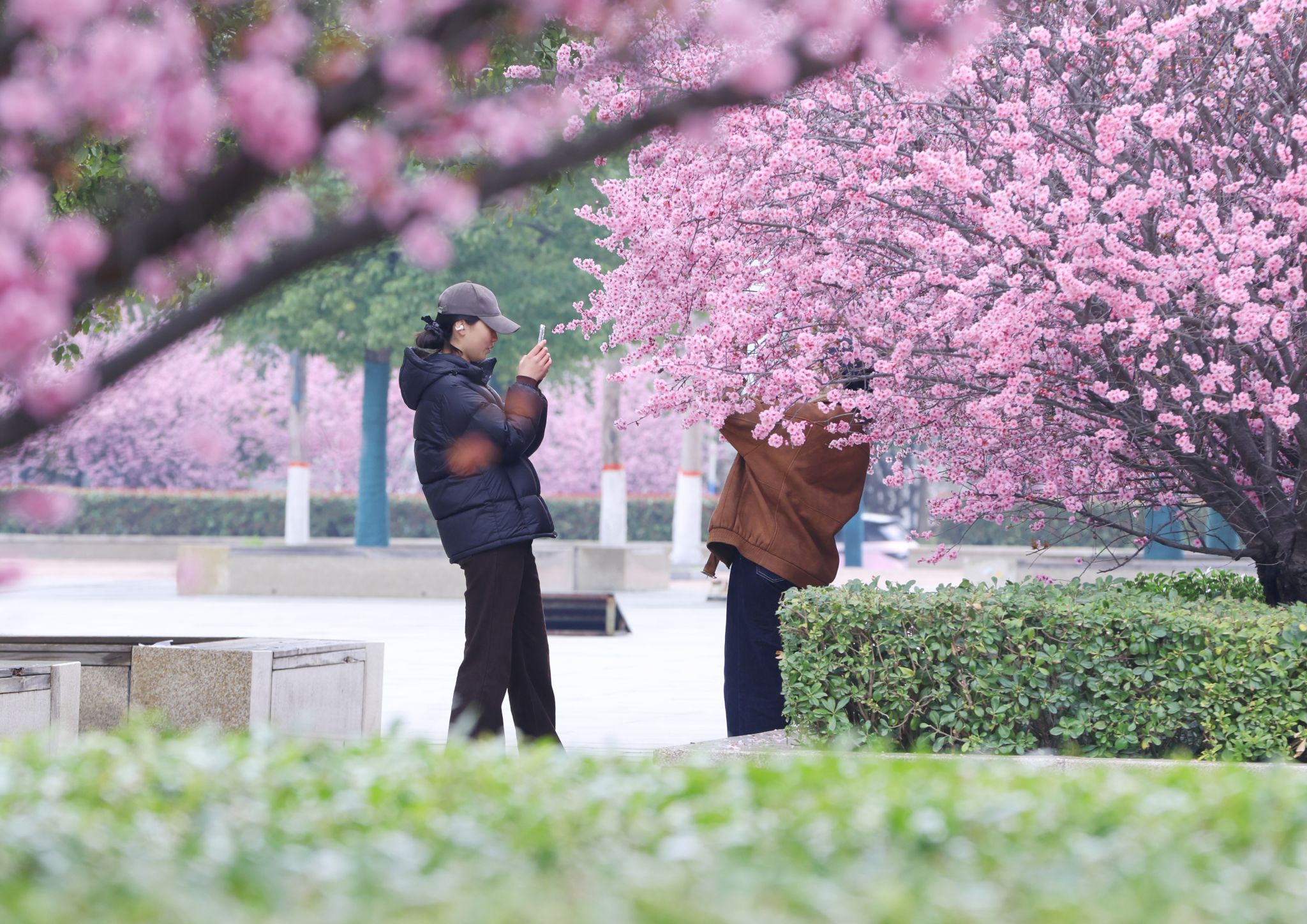 春风漫过许院,玉兰素白清雅,樱花盛放如雪,海棠点绛凝脂,碧桃灼灼映霞,迎春金灿流香,满眼繁花似锦,处处生机盎然。