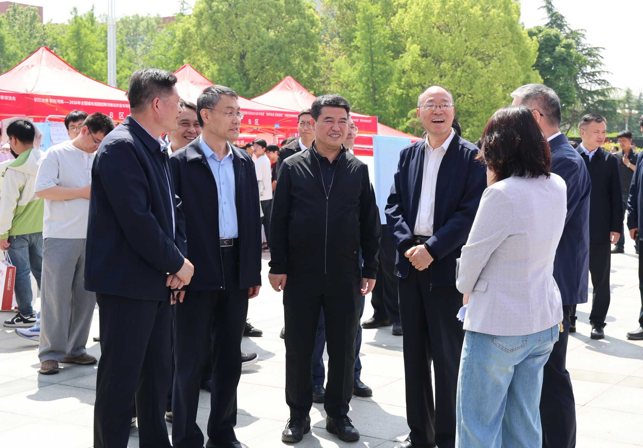 活动期间,河南省人社厅二级巡视员张天运,我校党委书记刘荣增、校长郑直、副校长牛海鹏,河南省人才交流中心主任卢宇,许昌市人力资源和社会保障局党组书记、局长冉高垒等领导深入现场,详细了解企业发展布局、行业发展动态及专业人才需求等情况,就深化校企人才培养合作、精准对接毕业生就业需求等与企业代表广泛交流。同时,亲切了解毕业生求职规划与实际诉求,鼓励毕业生把握春季求职“黄金期”,树立理性就业观,珍惜岗位资源,主动择业、顺利就业。