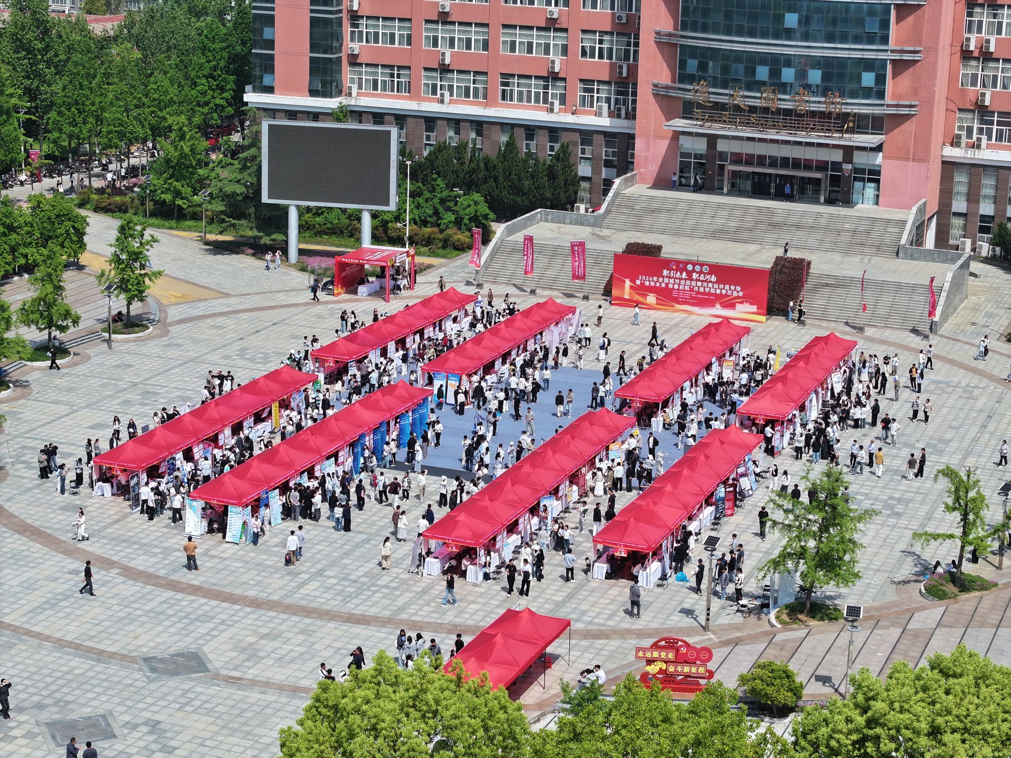 4月17日,“职引未来 职在河南——2026年全国城市巡回招聘河南站许昌专场暨‘豫荐未来 青春启航’许昌学院春季双选会”在我校弘毅广场举办。此次活动由河南省人力资源和社会保障厅主办,河南省人才交流中心、许昌市人力资源和社会保障局和我校承办。在许高校近万名毕业生参会。