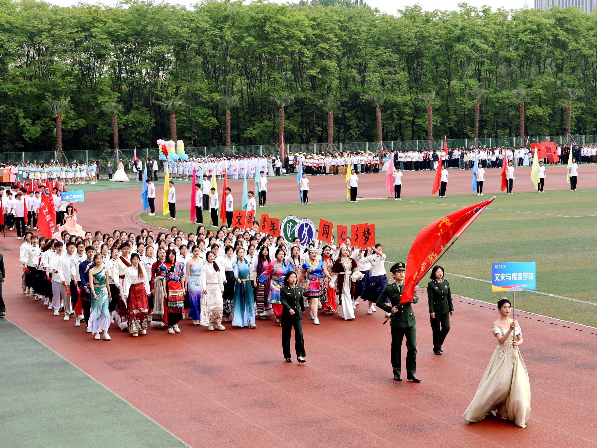 上午8时,伴随着激昂的《运动员进行曲》,国旗队方阵、彩旗方阵、各学院方阵以及研究生方阵步伐整齐、口号铿锵,依次通过主席台接受检阅。同学们各展所长,将专业特色融入入场式表演,以创意巧思诠释体育精神,精彩表现引来观众阵阵掌声与喝彩。