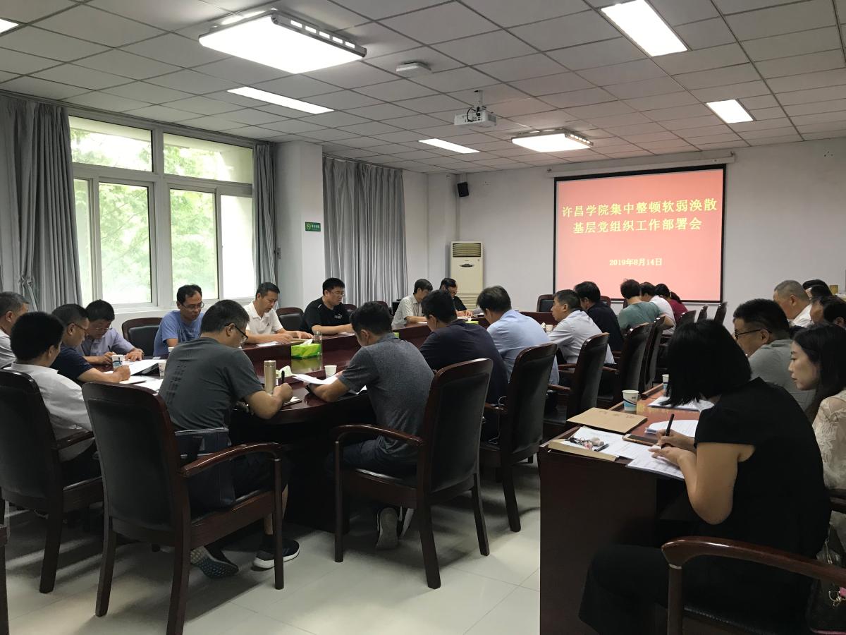 会上,陈部长传达了全省高校集中整顿软弱涣散基层党组织工作部署会精神,并就《许昌学院在“不忘初心、牢记使命”主题教育中集中整顿软弱涣散基层党组织实施方案》进行了重点安排部署。陈部长还就基层党支部建设“两化一创”强基引领三年行动计划、“不忘初心、牢记使命”专题教育预学习安排等相关工作做了进一步强调。