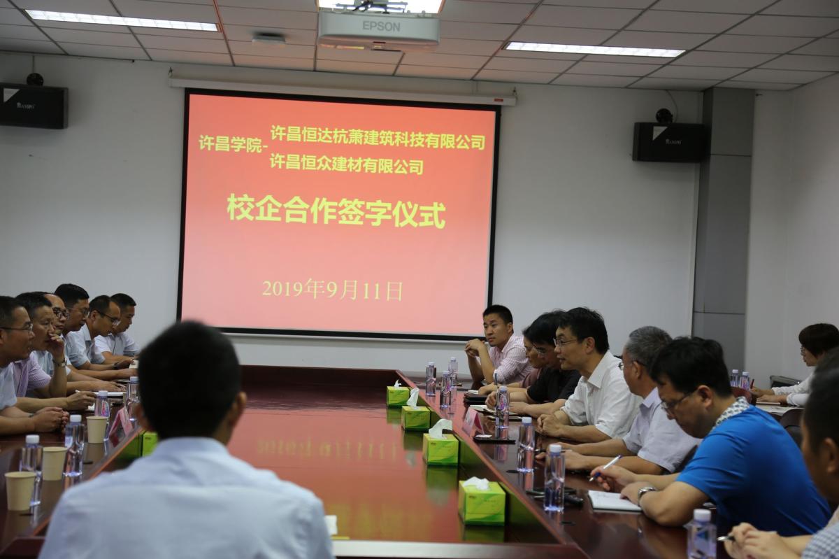签约仪式上,郑直副院长对许昌恒达杭萧、许昌恒众建材相关负责人的到来表示欢迎,并介绍了我校基本情况和近年来产学研合作开展情况。他希望双方以此为契机,加强沟通联系交流、深入开展横向合作,共同为学校内涵发展和许昌市地方经济社会发展做出贡献。