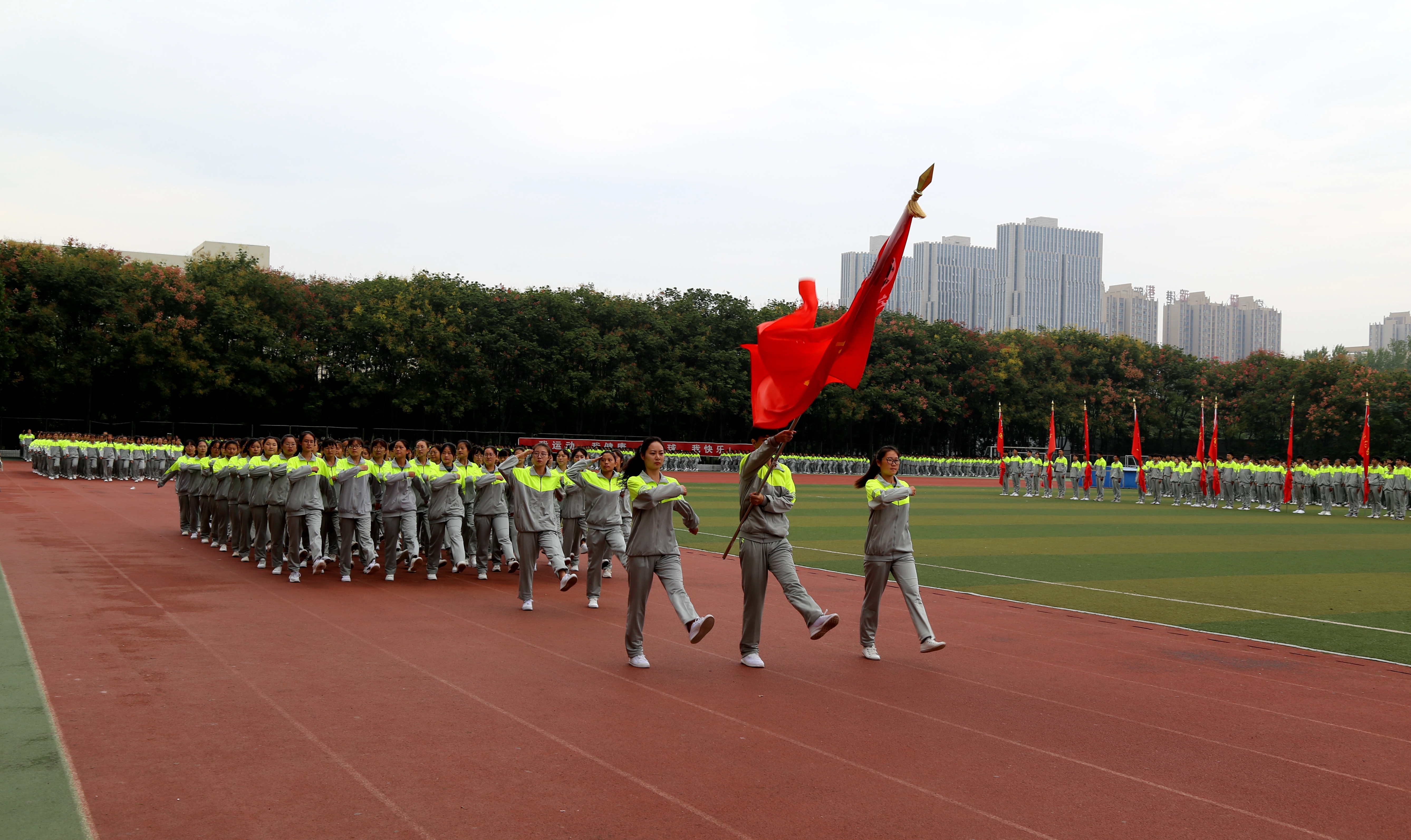 9月20日上午,我校在羽飞田径场举行2019级新生开学典礼暨军训总结表彰大会。党委书记闫纪建,院长岳修峰,党委副书记孙海,纪委书记罗凤英,副院长崔斌、郭涛,工会主席高金星,许昌军分区党委常委、战备建设处处长陈福星出席大会并在主席台就坐。学校机关各部门和二级学院负责人、各团总支负责人、辅导员(班主任)和全体2019级新生共同参加军训会操和开学典礼。仪式由党政办公室主任潘春彩主持。