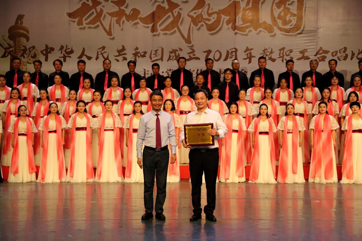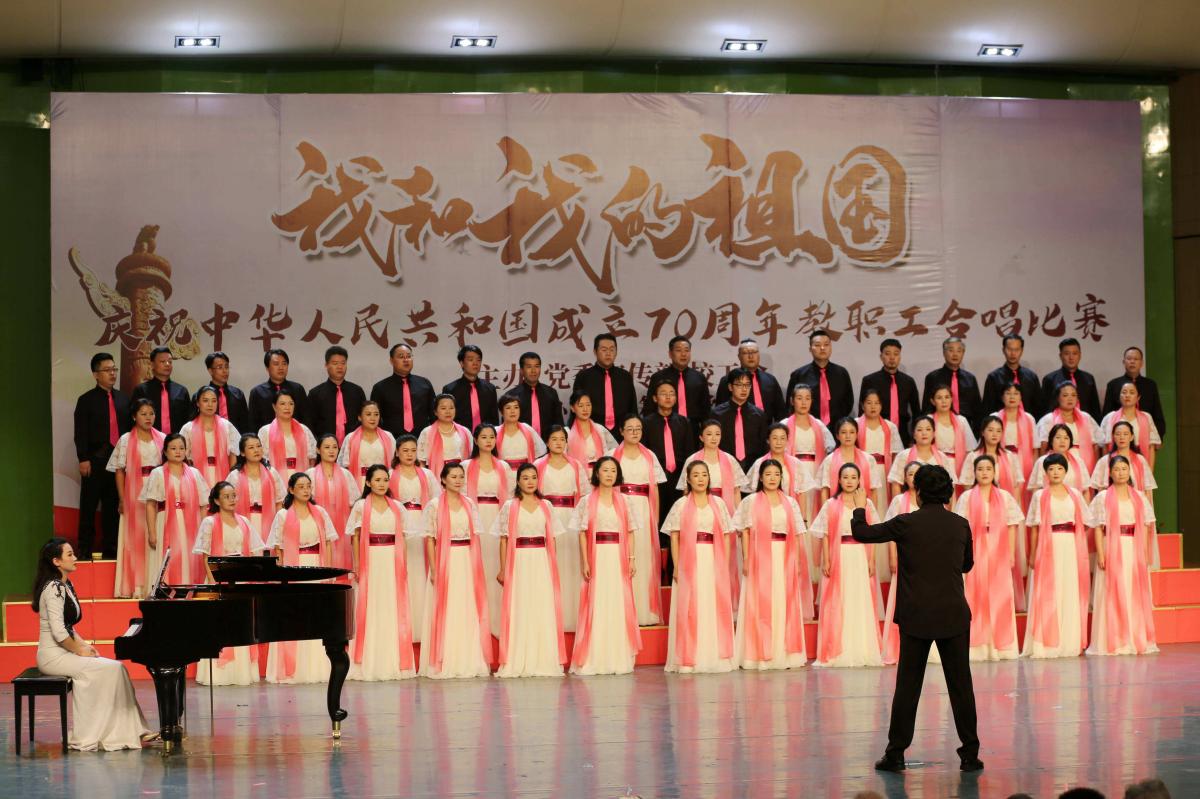 9月27日下午,我校在音乐厅举行“我和我的祖国”——庆祝中华人民共和国成立70周年教职工合唱比赛。党委书记闫纪建、院长岳修峰,党委副书记孙海,纪委书记罗凤英,副院长郑直、崔斌、黄怡俐、郭涛,工会主席高金星出席活动并参加演出。