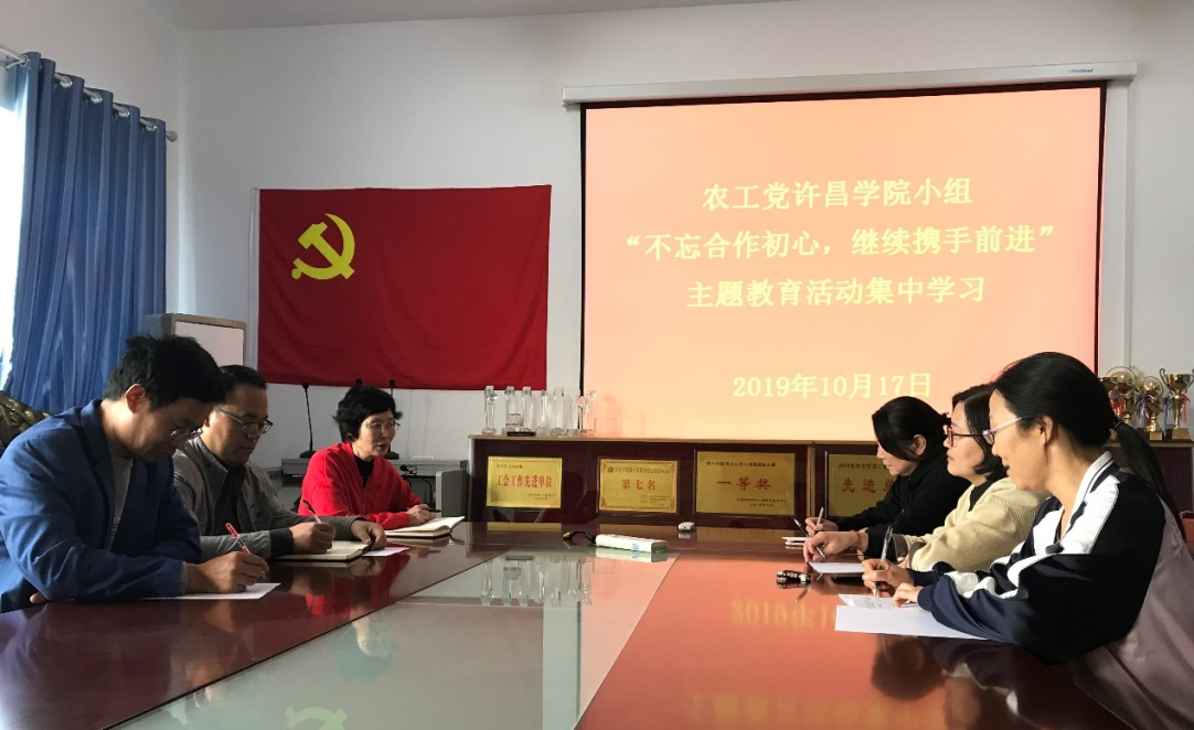 民盟许昌学院支部参加民盟许昌市委召开的“不忘合作初心,继续携手前进”主题教育活动动员会,并对支部工作进行安排部署。支部成员积极参加民盟河南省委举办的“不忘合作初心,继续携手前进——庆祝中华人民共和国成立70周年暨中国共产党领导的多党合作和政治协商制度确立70周年大合唱”比赛,组织参观中共许昌市委“不忘初心,牢记使命”主题教育展,不断提升支部战斗力和凝聚力。