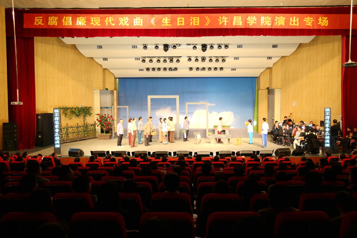 “不是自己的饭碗不要端,不是自己的衣裳别往身上穿!”“官再大不能对百姓冷脸,为百姓做实事才是好官!”12月18日,大型原创反腐倡廉现代戏,第八届黄河戏剧节金奖剧目《生日泪》在我校音乐厅进行了专场演出,校领导罗凤英、崔斌、黄怡俐、高金星与全校科级以上干部、师生代表共同观看了演出。