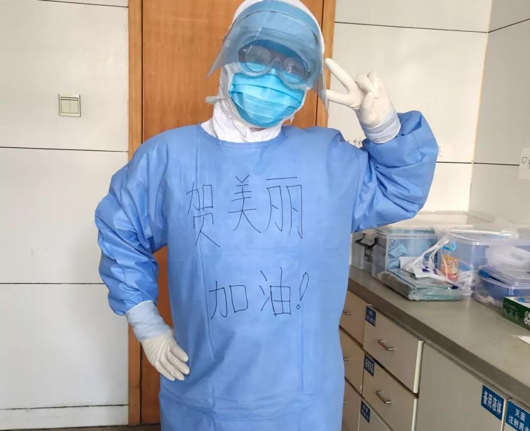问及原因,同事们都说,小姑娘年轻乐观,积极向上,人美心灵也美,她来以后整个病区氛围立刻活跃起来。“贺美丽”的本名是贺芮,是我校医学院19届护理专业毕业生,现在是义煤总医院新冠肺炎隔离病区的一名护士。2019年7月,离开校园的她顺利通过考试到义煤总医院上班,工作不到20天,她就参加了义马气化厂“7.19”事故医疗救援,时隔6个月后,她又在23岁生日当天,主动请缨,成为义煤总医院新冠肺炎抗疫一线的一名战士,是隔离病区年龄最小的一名医护人员。
