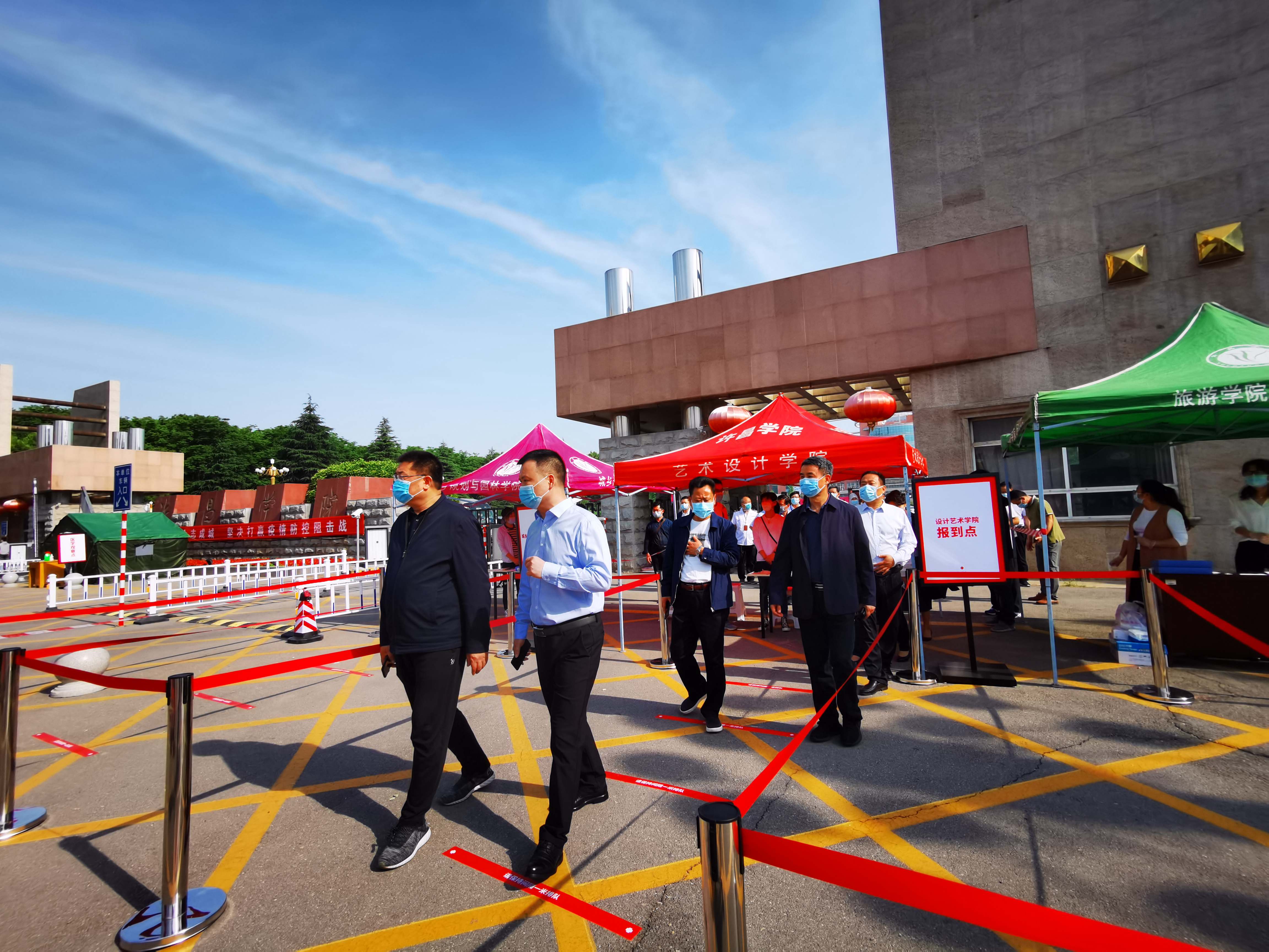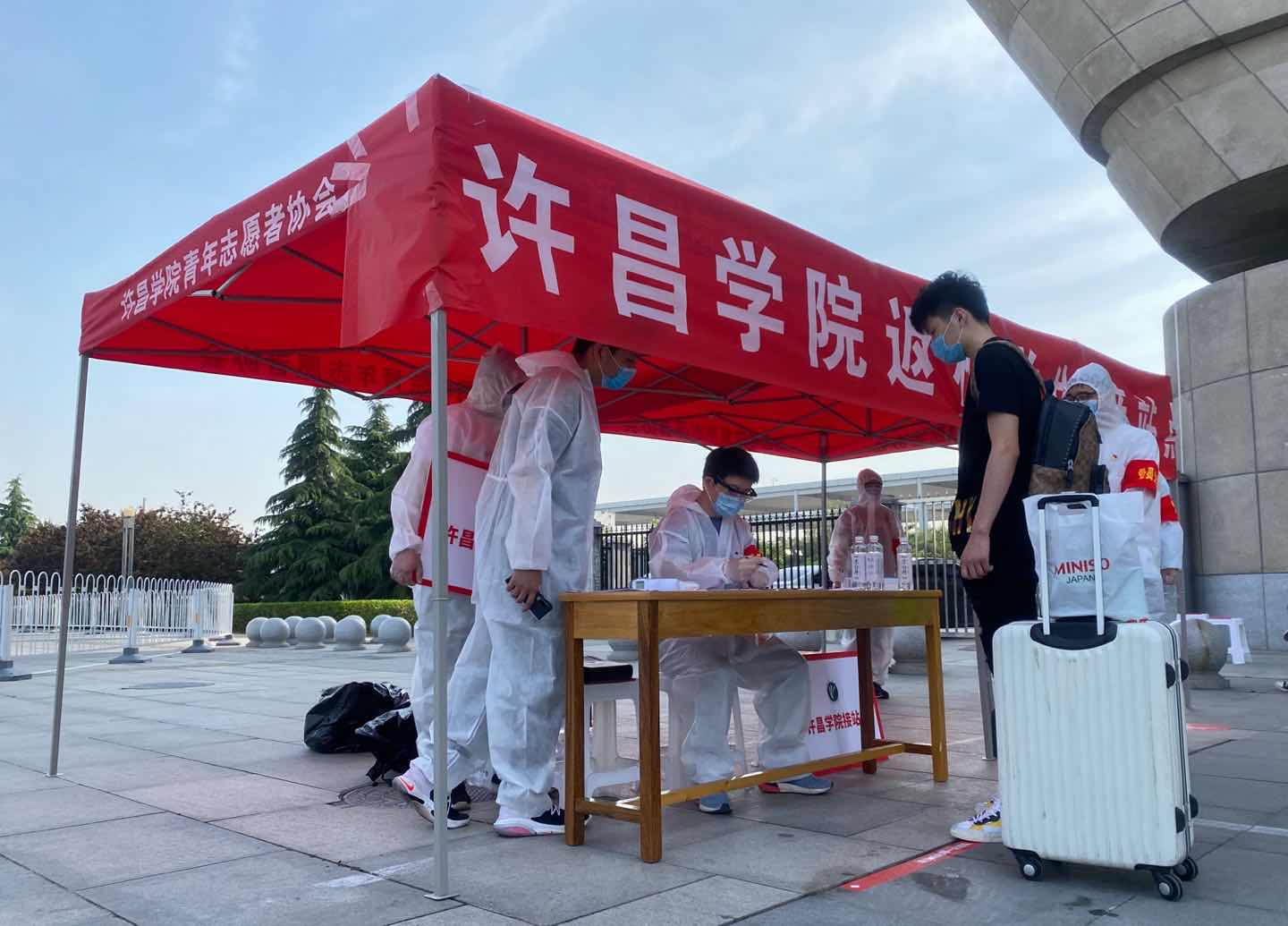 全体校领导来到一线,欢迎同学们“回家”。许昌东城区卫健局带领专班工作人员全程检查指导。校领导、相关部门负责人来到车站接待处、报到点、超市、学生餐厅和宿舍等地查看返校情况。
