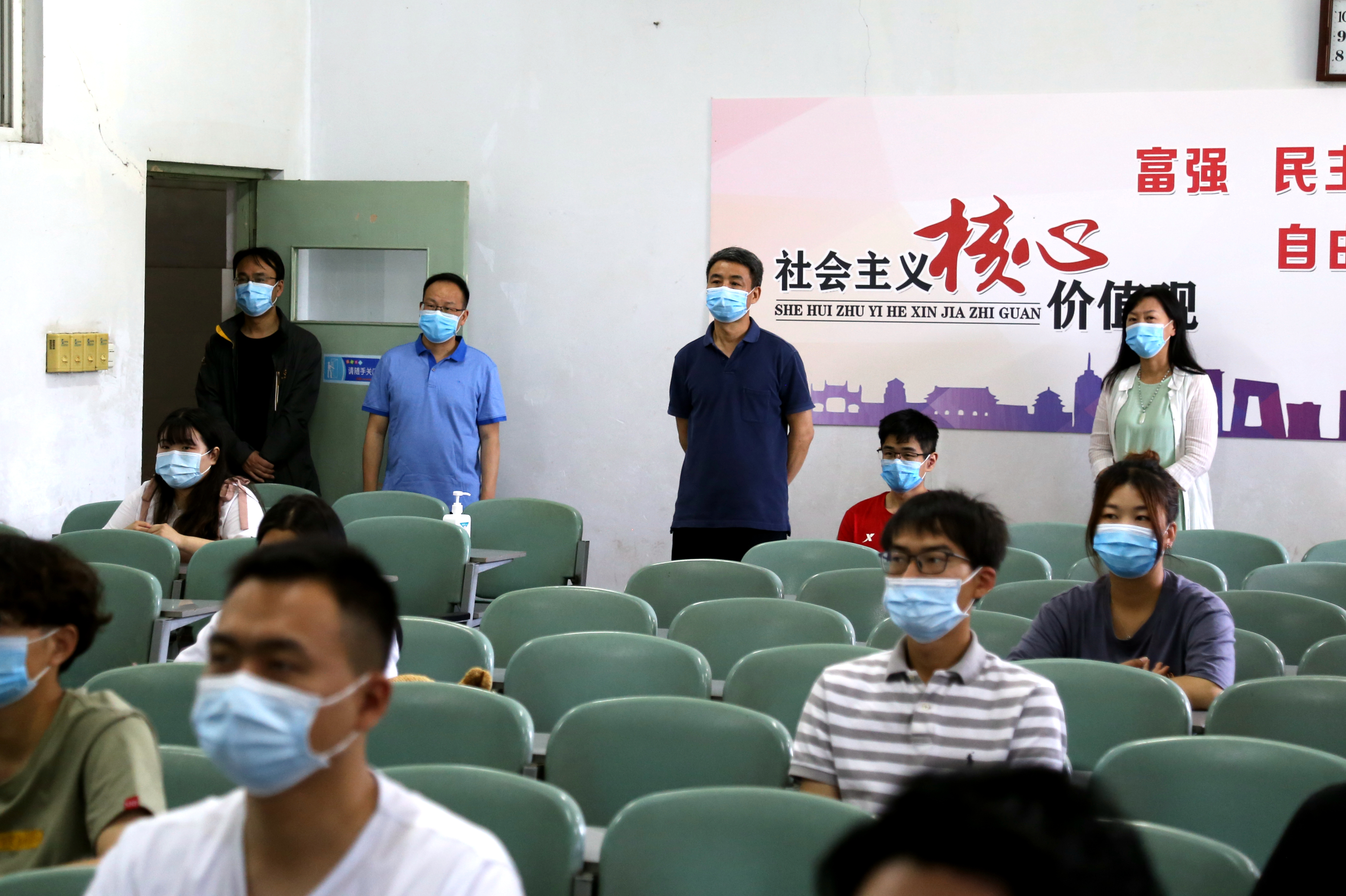 全体返校学生在相关部门和二级学院的组织下,观看了由省教育厅统一录制的全省高校“返校复学第一课”微课视频,开展了实操演练活动,举办了以“控制传染源、切断传播途径”为主题的专题讲座,各院系还在学生处、团委的指导下开展了好故事、好电影、 好图书、好歌曲和好论文推荐、主题班会和师生同唱爱国歌曲等活动。