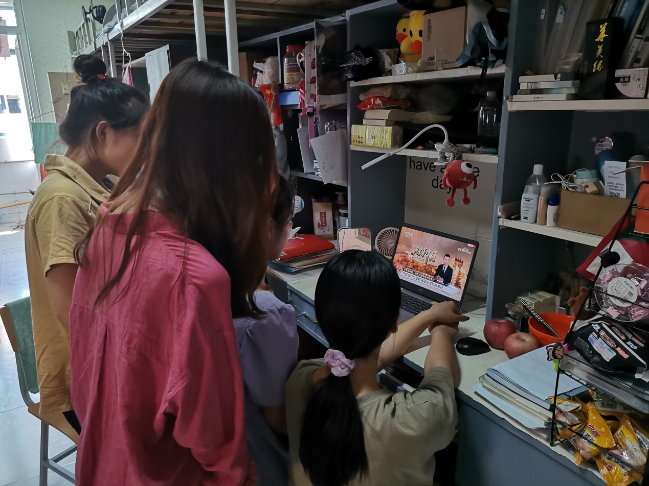 外国语学院党委书记王国志说:看完纪念抗战胜利活动直播后,深切感受到当今的和平生活来之不易,我们要牢记总书记嘱托。广大教师要立足本职岗位,提升教学能力,提高教学质量,将抗战精神传承发扬下去,担负起立德树人的重任和培养时代新人的使命。