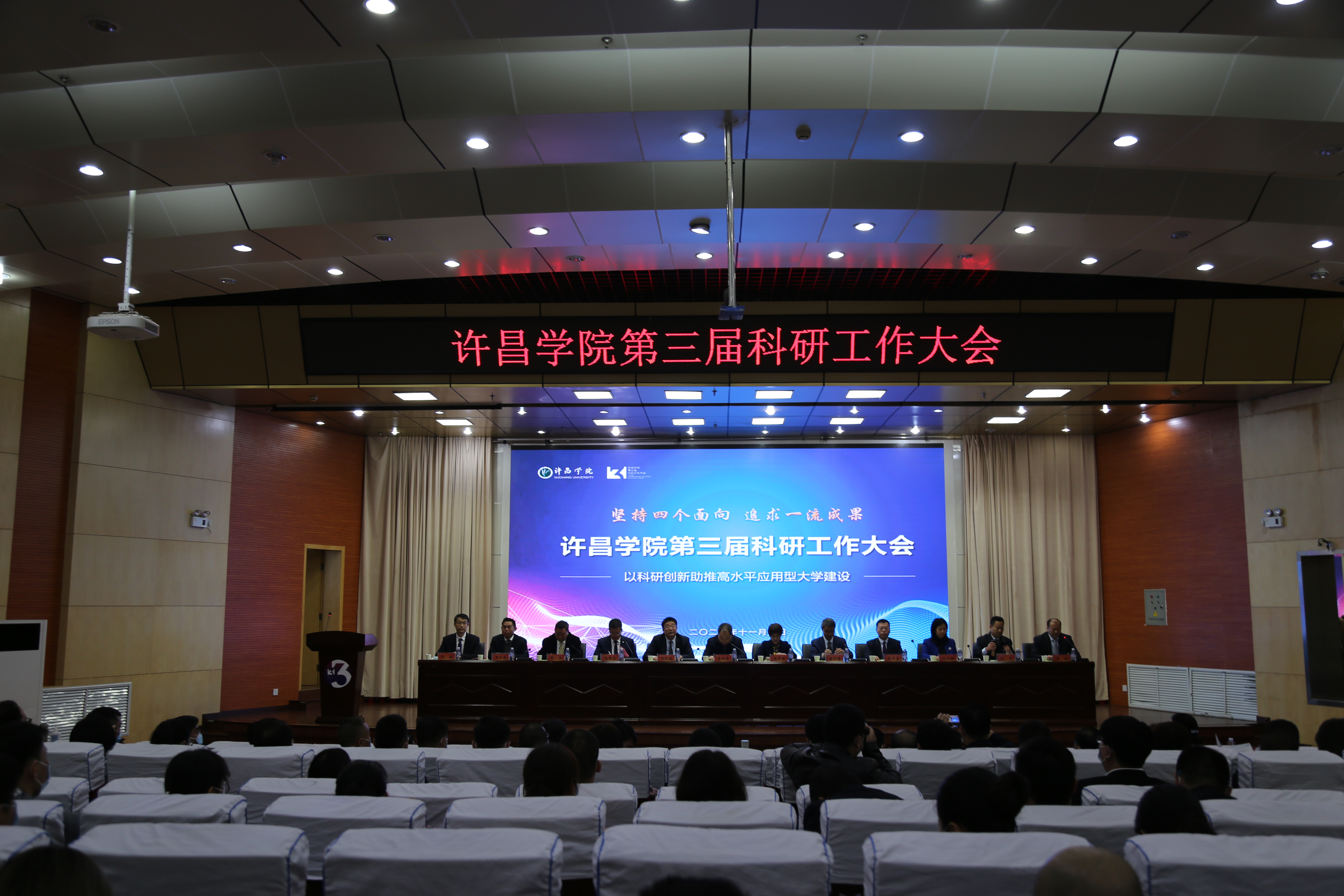 11月6日,我校第三届科研工作大会在图书馆二楼学术报告厅召开。河南省教育厅二级巡视员、学生处处长李培俊,省科技厅基础研究处处长杨梦琳,我校党委书记闫纪建、院长岳修峰,延安大学党委委员、副校长杨伟宏,省教育厅科技处处长杨学勇、社会科学与语言文字处处长韩冰,省教育科学研究院院长成光琳,许昌市科技局党组书记、局长张仕民,延安大学科研处处长王延峰,我校全体校级领导干部出席会议。会议分两个阶段,分别由副院长崔斌、黄怡俐主持。