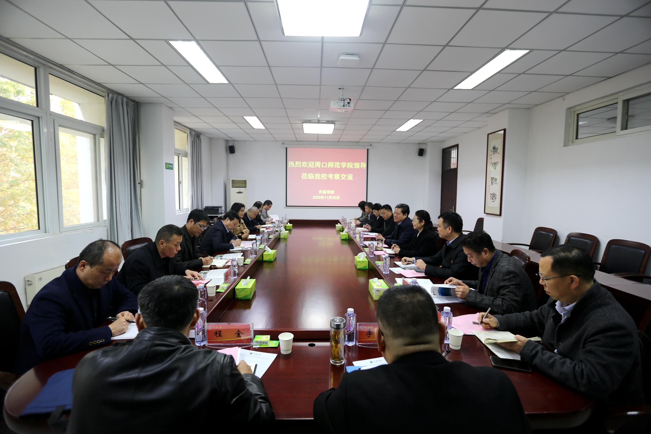 11月20日上午,周口师范学院副校长陆相欣、陈喜玲和相关部门负责同志一行10人到我校考察交流。学校党委书记闫纪建、院长岳修峰热情接待了来访客人,副院长郑直、高金星、潘春彩出席交流活动。