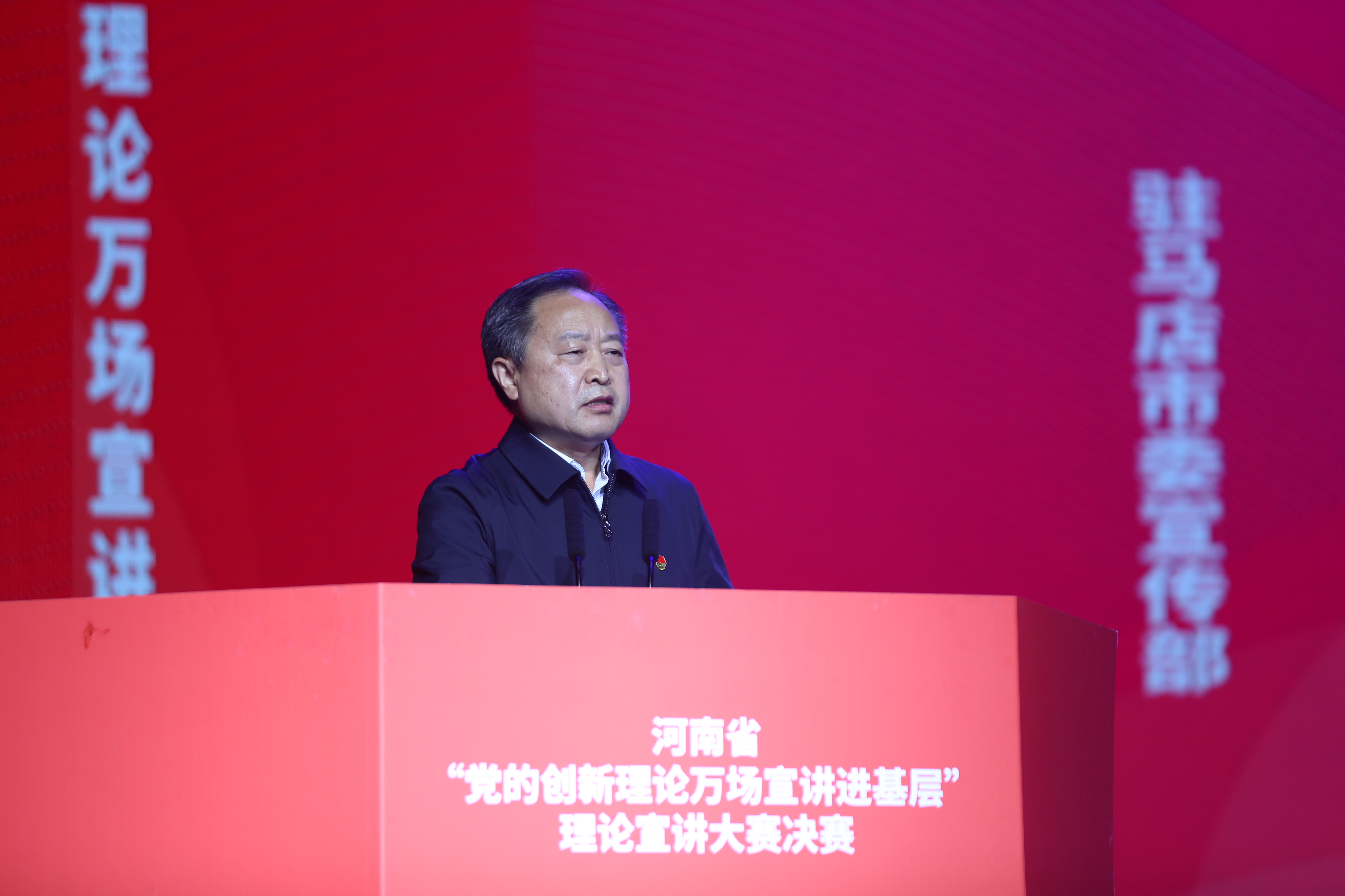 河南省委宣传部副部长尹书博对本次大赛给予了充分肯定。他指出,“党的创新理论万场宣讲进基层”活动是近年来我省理论宣讲工作着力打造的特色品牌,有力地推动了习近平新时代中国特色社会主义思想在中原大地落地生根,在全国产生了一定的影响力。就进一步做好“党的创新理论万场宣讲进基层”理论宣讲工作,他强调,要紧跟理论创新步伐,争做党的创新理论的坚定信仰者;要不断提升宣讲艺术,争做党的创新理论的热情传播者;要积极投身伟大事业,争做党的创新理论的模范践行者,用基层宣讲中的青春风采为中原更加出彩增色“添彩”,为党的十九届五中全会精神在中原大地落地生根贡献力量。