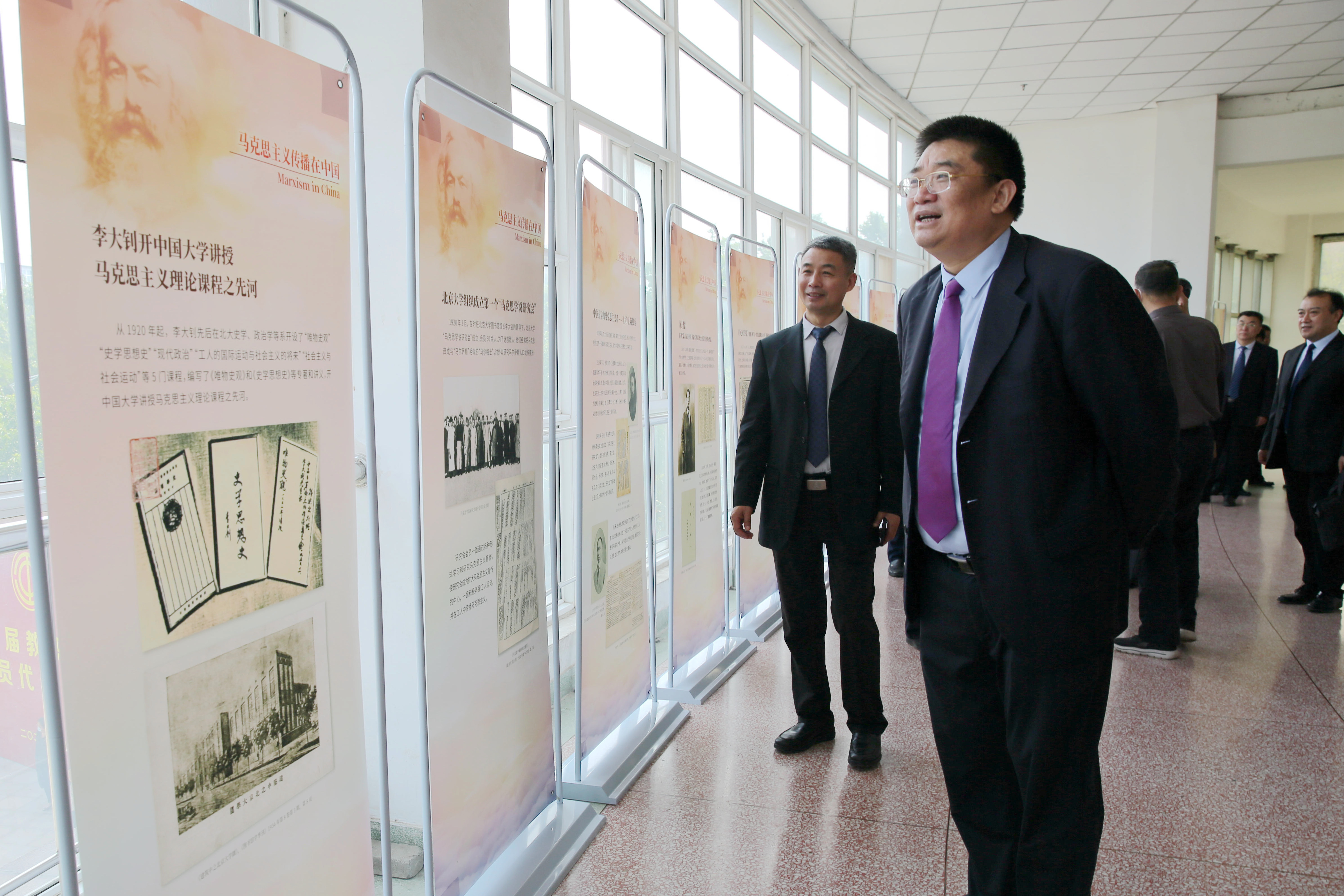 近日,由我校党史学习教育领导小组办公室主办,党委宣传部、马克思主义学院(中原农村发展研究中心)、中原农耕文化博物馆承办的“红色印记”系列主题展览在我校举行。展览围绕建党100周年以来党史和党建方面的文献资料,分设“马克思主义传播在中国”文献展、“忆初心 启新程”主题展和“奋斗百年 农耕嬗变”专题展三个部分,分别在图书馆学术报告厅长廊、二楼大厅和中原农耕文化博物馆展出,面向全校师生开放。