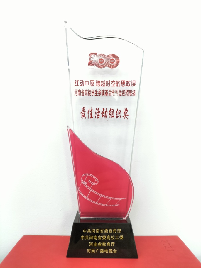 活动现场对“红动中原 跨越时空的思政课”——河南省高校学生参演革命电影微视频展播优秀作品进行了颁奖,由我校党委宣传部选送,法学院学子演绎的《恰同学少年》获评“最佳活动组织奖”。
