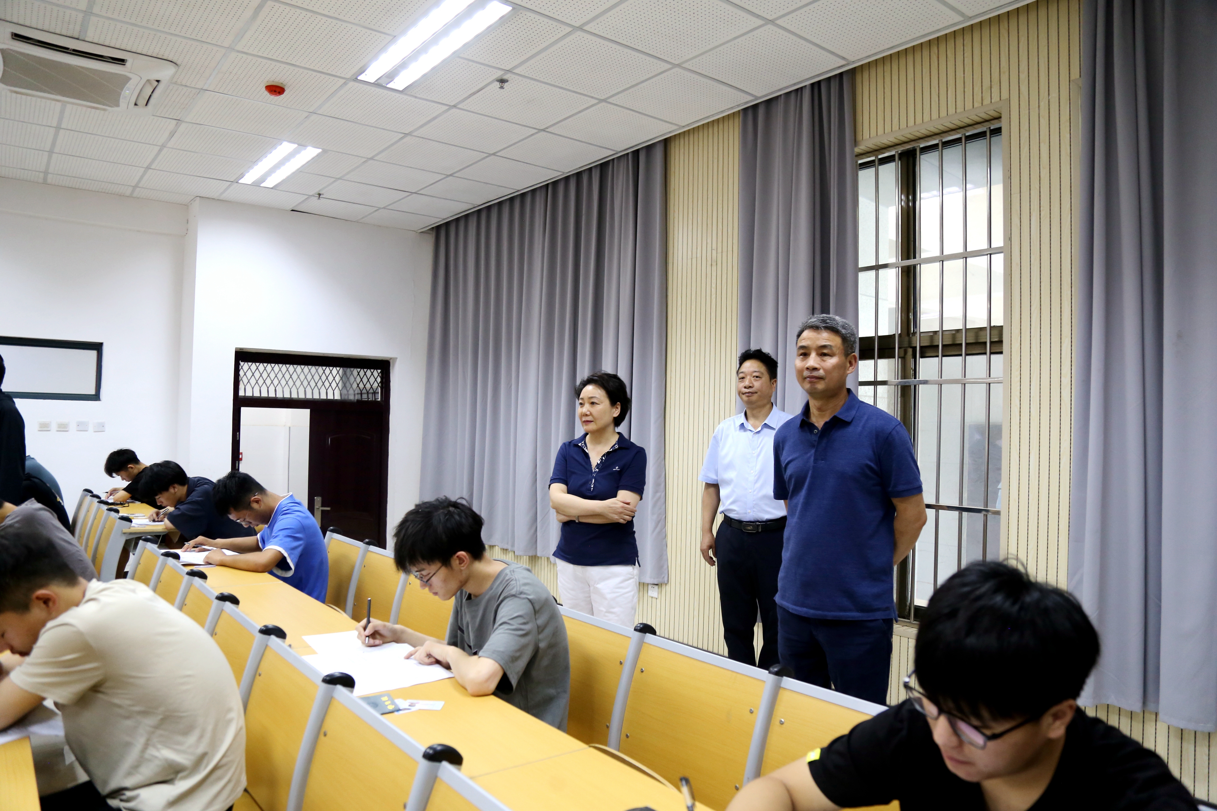 6月21日,院长岳修峰、副院长黄怡俐在院长办公室、教务处等相关职能部门负责人陪同下,来到文科综合楼各考场,对期末考试工作进行检查巡视。