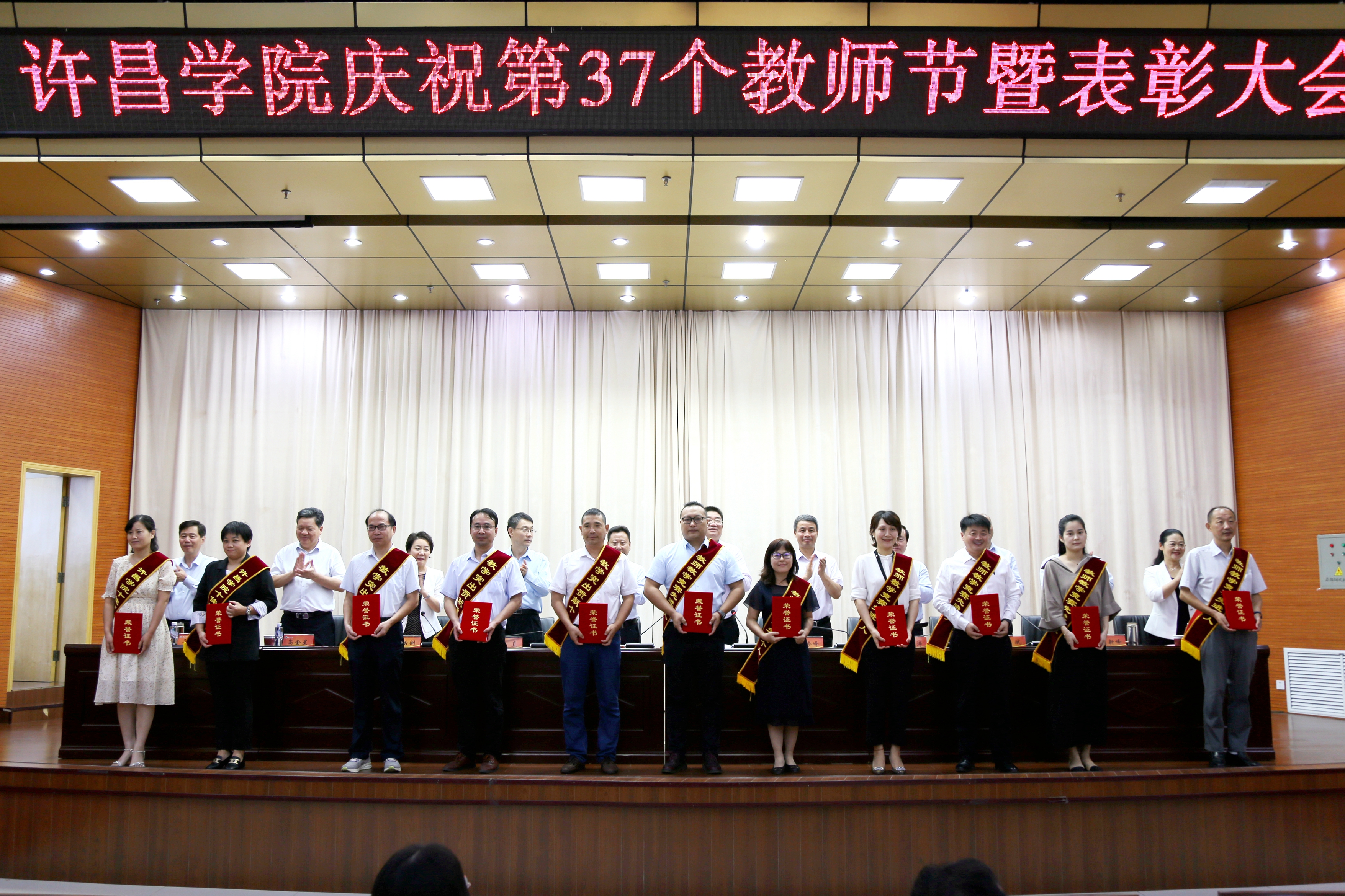 9月9日上午,我校在图书馆学术报告厅举行表彰大会,热烈庆祝第37个教师节。校级领导闫纪建、岳修峰、孙海、郭涛、郑直、崔斌、黄怡俐、周新峰、高金星、潘春彩、王东晓出席大会。全校中层正职干部、受表彰的先进个人、教师代表参加表彰大会。大会由党委书记闫纪建主持。