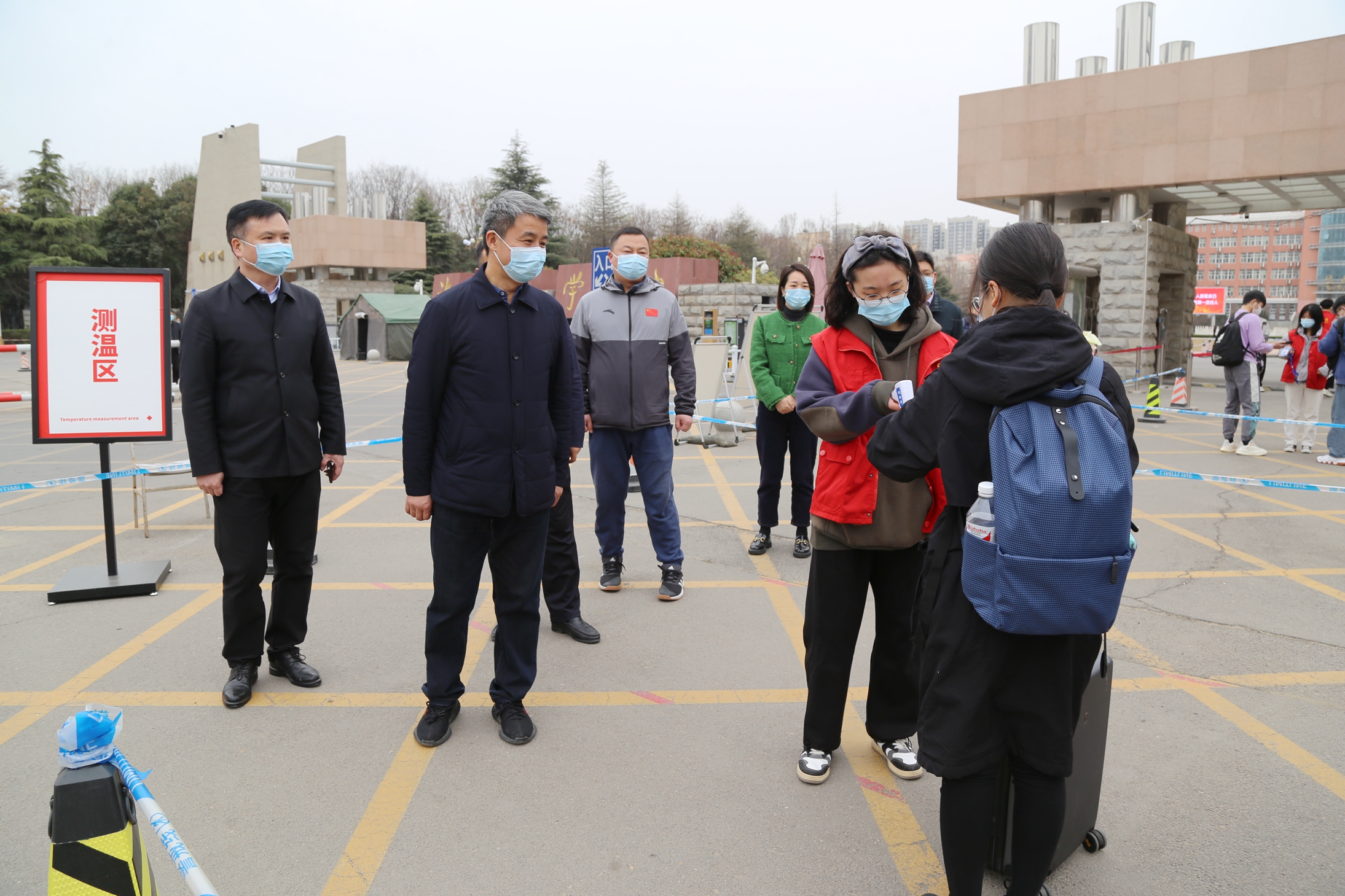 院长岳修峰,副院长高金星、潘春彩带领学校疫情防控各专班负责同志,来到学校北大门和南大门的返校入口、宿舍、餐厅等场所,实地查看并指导学生返校报到、疫情防控及服务保障工作,慰问返校学子和工作人员。校领导与师生们亲切交流,详细询问大家的工作开展情况、身体状况和返校途中情况等。