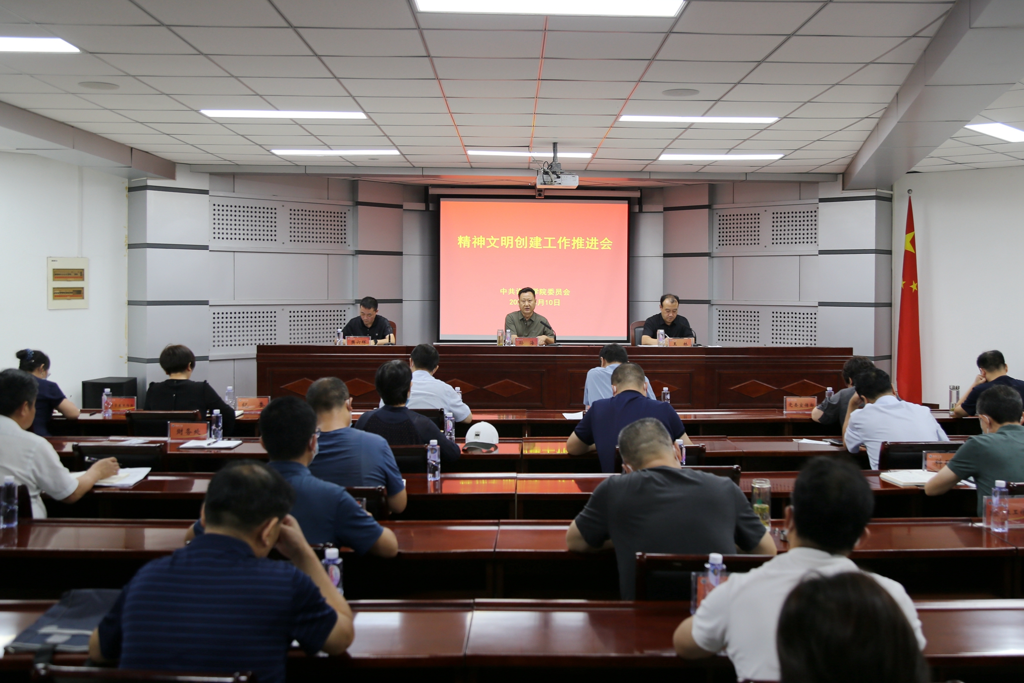 8月10日下午,我校在办公楼第三会议室召开精神文明创建工作推进会。校党委副书记孙海出席会议。校精神文明建设指导委员会成员单位负责人,各基层党委、直属党支部主要负责人,以及有关职能部门负责人参加会议。会议由党委宣传部部长、校精神文明建设指导委员会办公室主任王林主持。