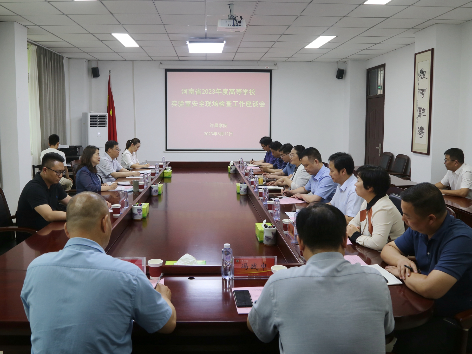 根据《河南省教育厅关于组织开展河南省2023年度高等学校实验室安全现场检查工作的通知》要求和部署,6月12日下午,省教育厅安全督导专家组在组长华北水利水电大学实验管理中心主任黄健平带领下,一行4人来到我校检查指导实验室安全工作。我校在办公楼第一会议室召开专题座谈会。副院长潘春彩出席会议。