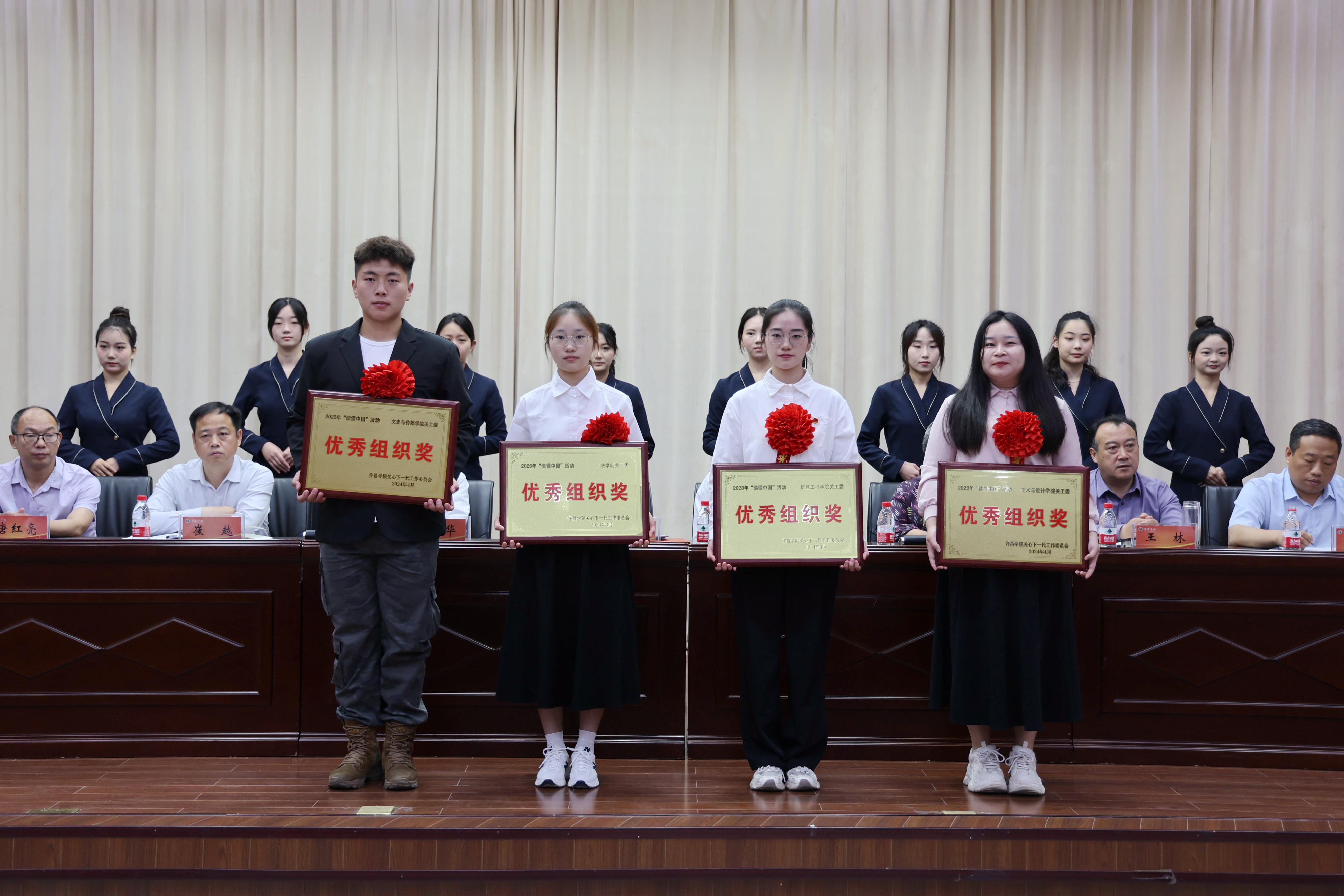 5月9日上午,我校2023年度学雷锋暨“读懂中国”活动表彰大会在图书馆二楼学术报告厅召开。校党委副书记、工会主席、关工委主任梁予昉,校关工委副主任崔斌、汪庆华、黄桂贞出席会议。会议由崔斌主持。