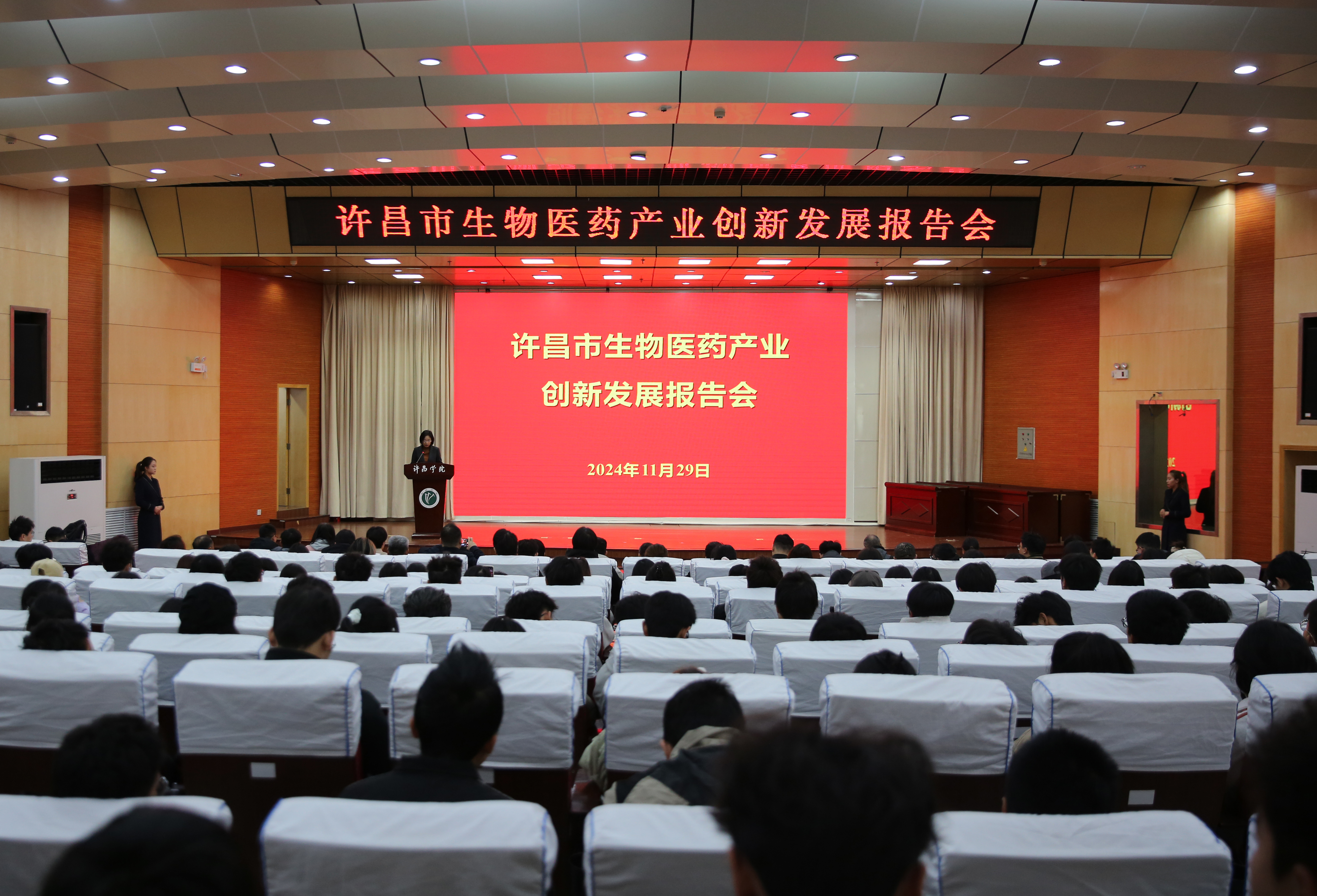 11月29日上午,许昌市生物医药产业创新发展报告会在我校学术报告厅举行。上海市生物医药科技产业促进中心副主任任大伟、许昌学院副校长杜根远、许昌市卫生健康委主任干静出席会议。许昌市发改委、工信局、科技局、卫健委负责人,生物医药产业链重点企业负责人及我校师生200余人参加报告会。报告会由干静主持。