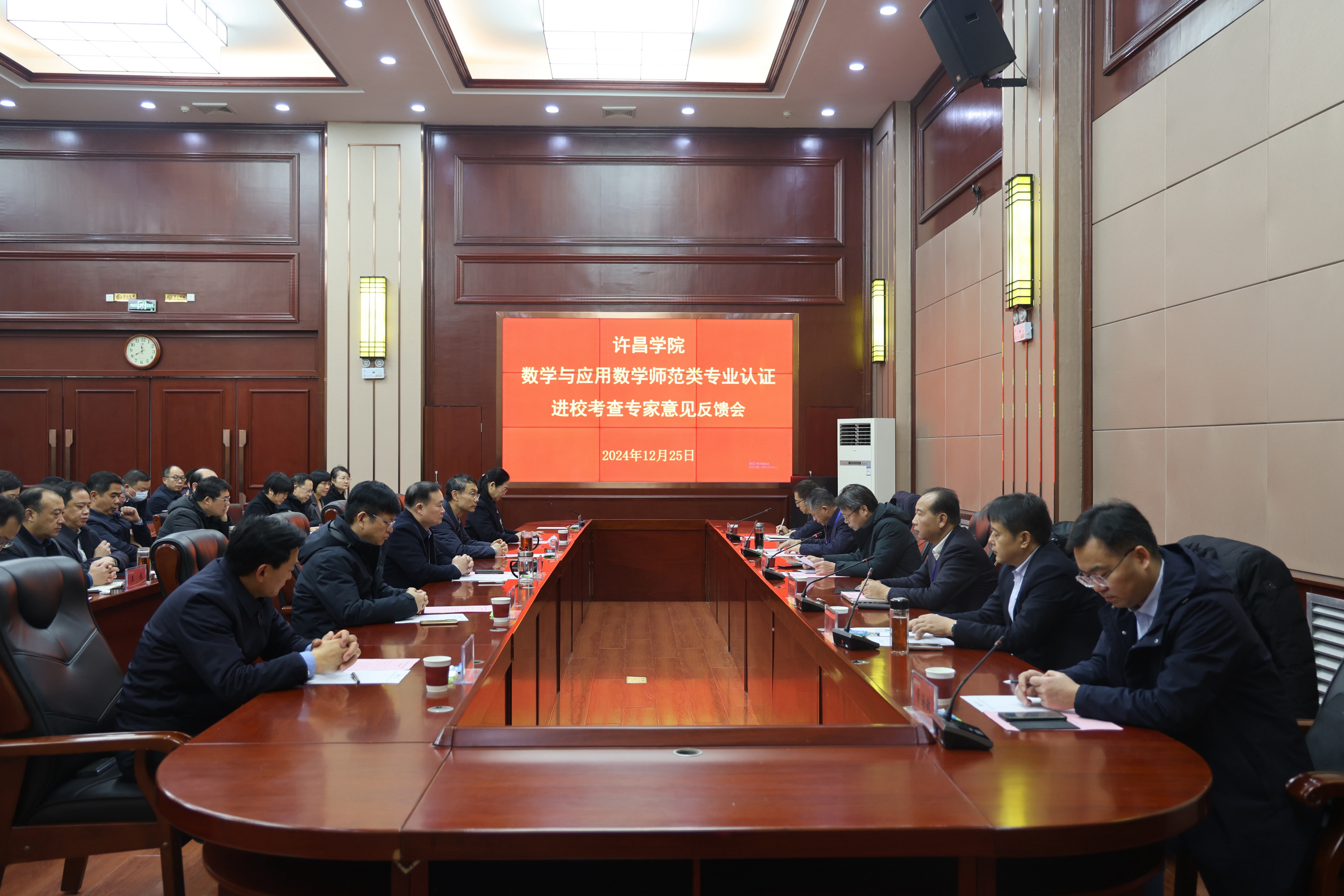 12月25日上午,教育部师范类专业认证专家组在我校学术会议中心召开数学与应用数学专业进校考查意见反馈会。专家组组长祝东进教授,河南省教育评估中心副主任张新民教授,专家组成员苏本跃教授、李波教授、冉明远正高级教师,秘书常海敏副教授,我校全体在校校领导出席会议。反馈会由祝东进主持。