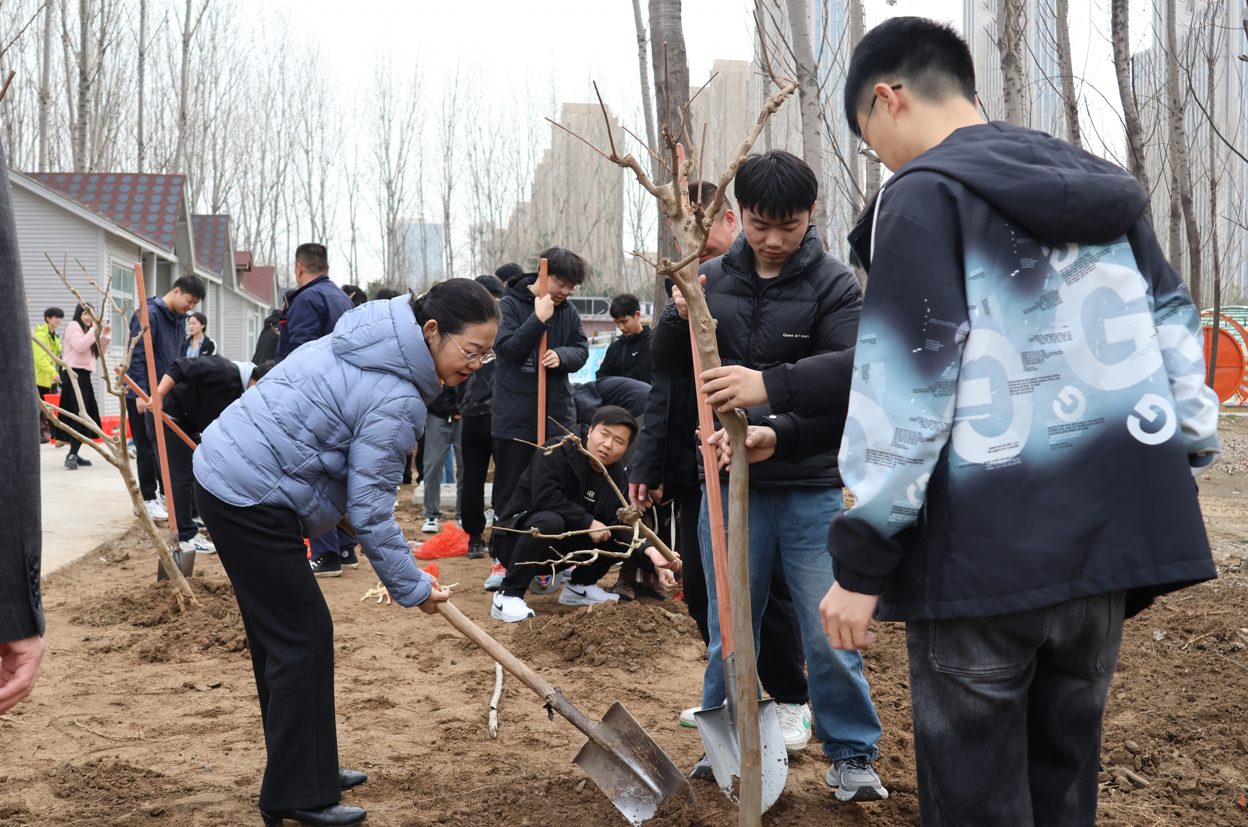 3月12日上午,全国第47个植树节到来之际,我校在耕读园开展“播种绿色希望,收获生态未来”主题植树活动暨校园劳动实践锻炼,以实际行动践行绿色发展理念,为校园增添盎然生机。副校长潘春彩与后勤管理服务中心、二级学院师生代表60余人共同参加活动。