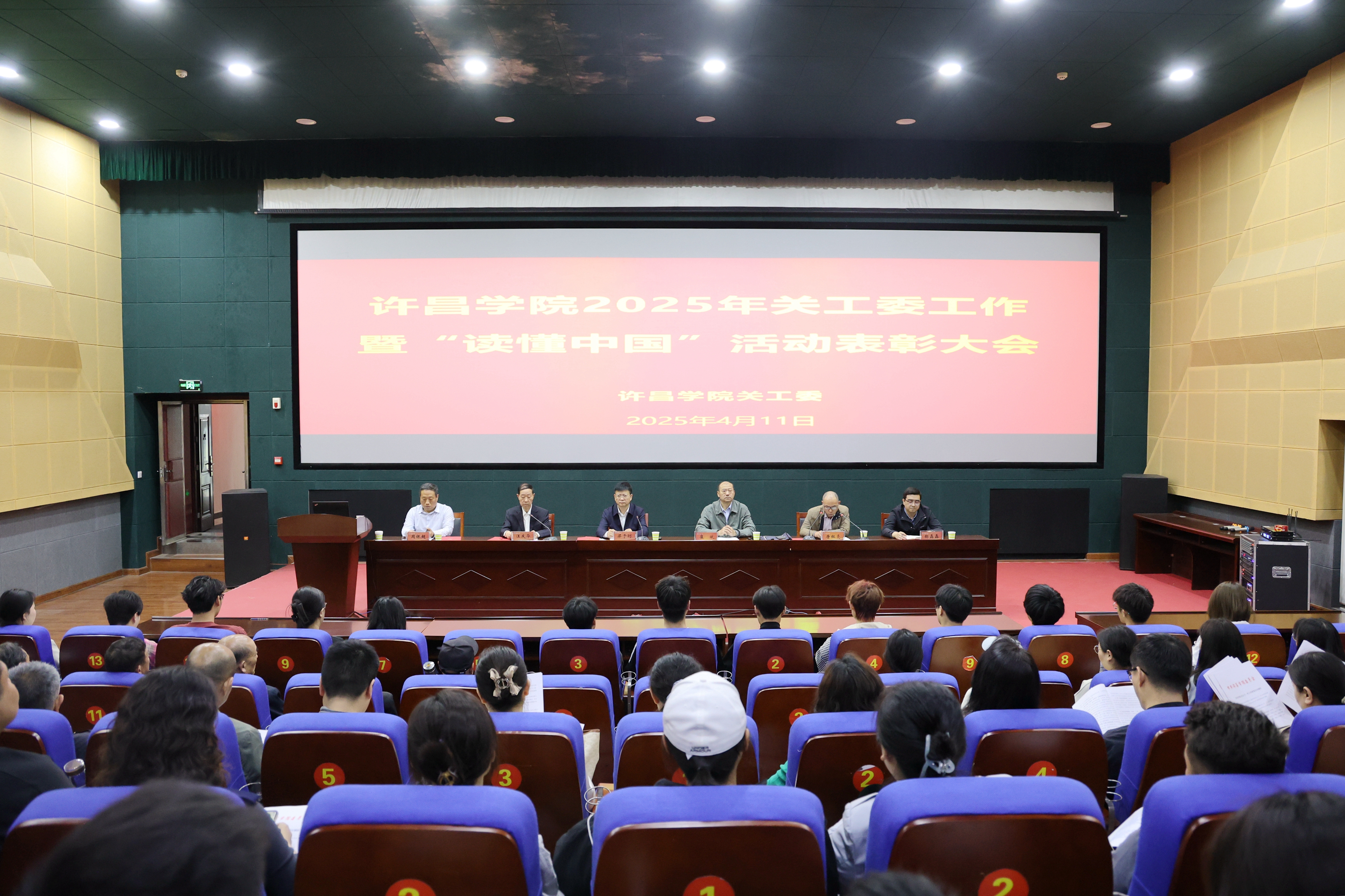 4月11日上午,许昌学院2025年关工委工作暨2024年度“读懂中国”活动表彰大会在学生中心二楼多功能报告厅召开。校党委副书记、工会主席、关工委主任梁予昉,校关工委副主任崔斌、汪庆华出席会议。学校相关职能部门负责人,各二级学院关工委主任、副主任、秘书长,学生代表参加会议。会议由离退休工作处党委书记、关工委秘书长唐红亮主持。