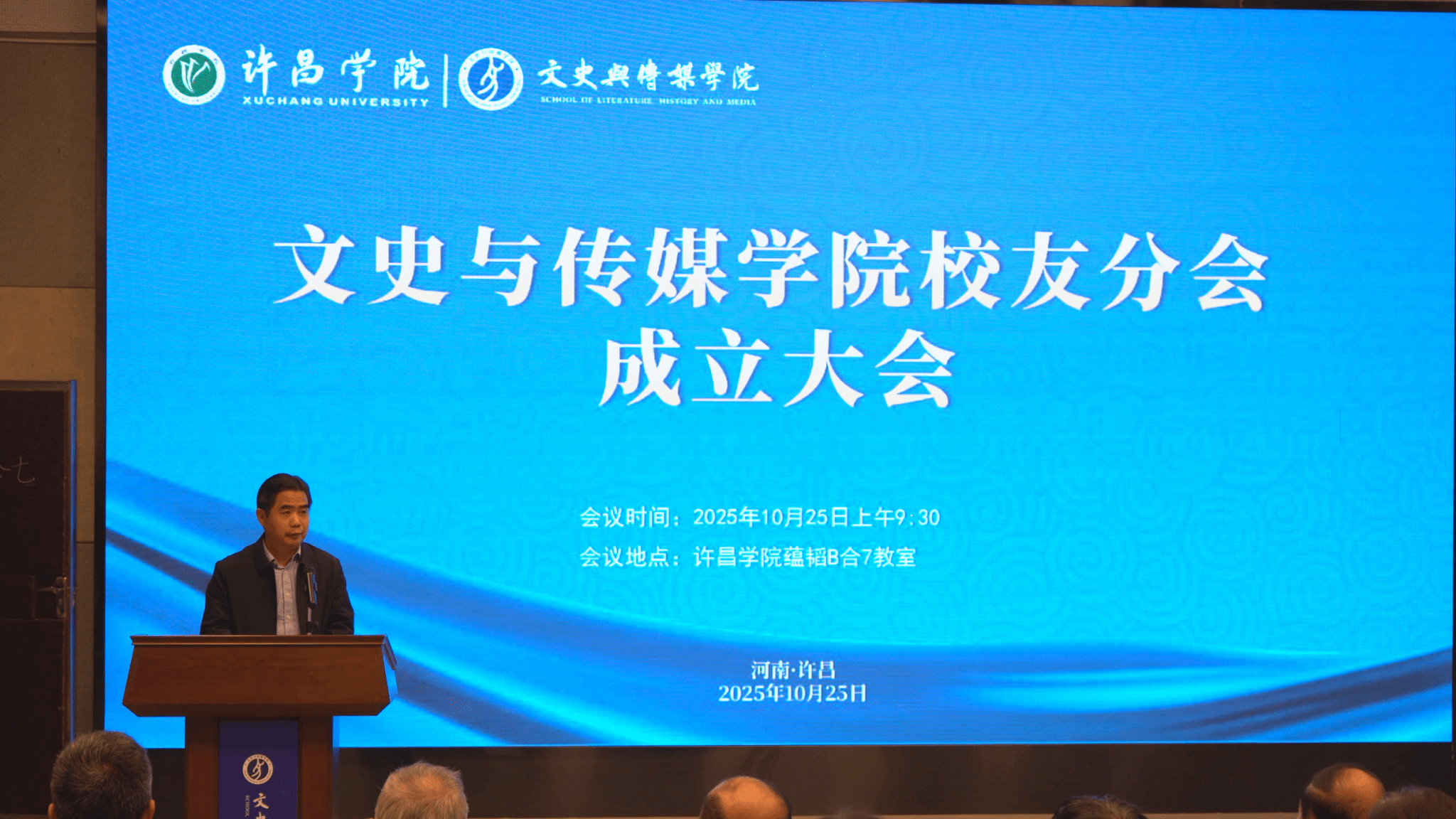 10月25日,文史与传媒学院校友分会成立大会在蕴韬B楼合7演播厅召开,副校长冯晓民,许昌学院校友工作办公室负责人,文史与传媒学院历任领导、老教师、优秀校友代表参加此次成立大会。会议由文史与传媒学院院长尤建设主持。